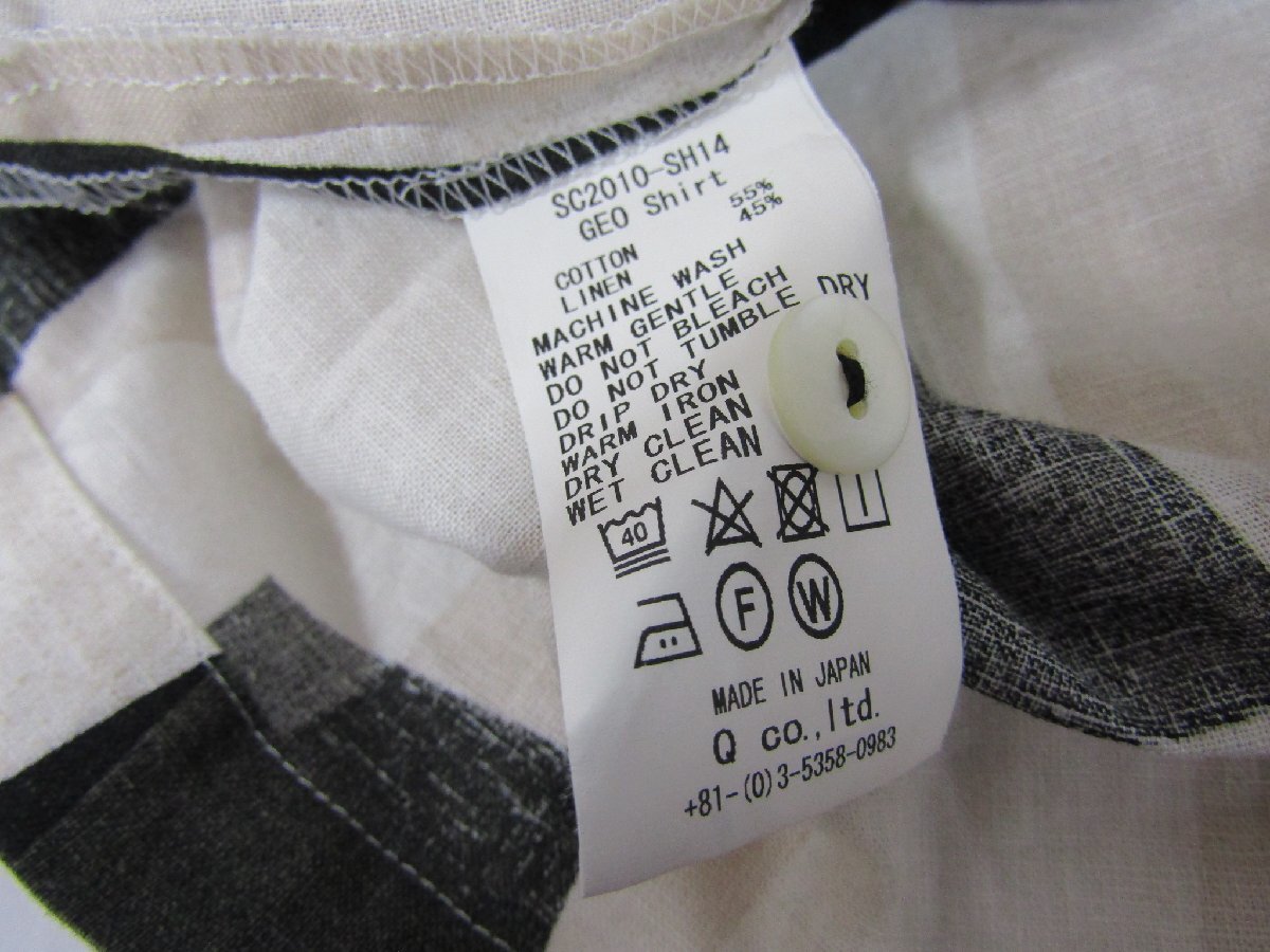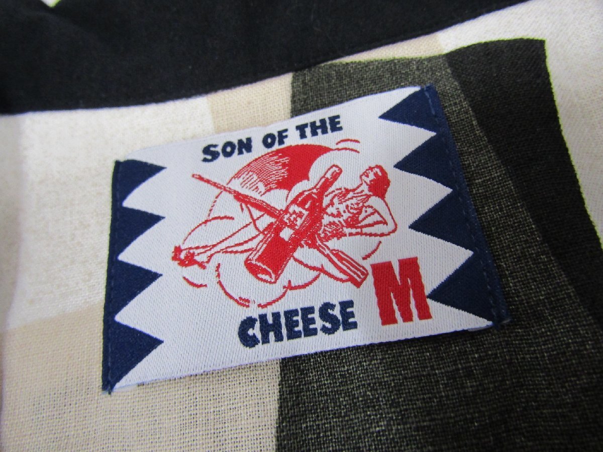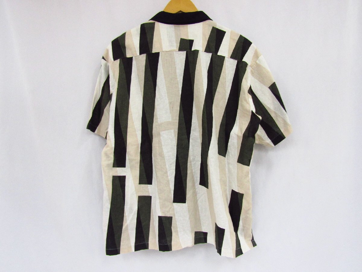 SON OF THE CHEESE サノバチーズ ストライプ 総柄 オープンカラーシャツ GEOShirt 半袖 ベージュ グリーン リネン Mサイズ 中古品★101039 | |||||||||