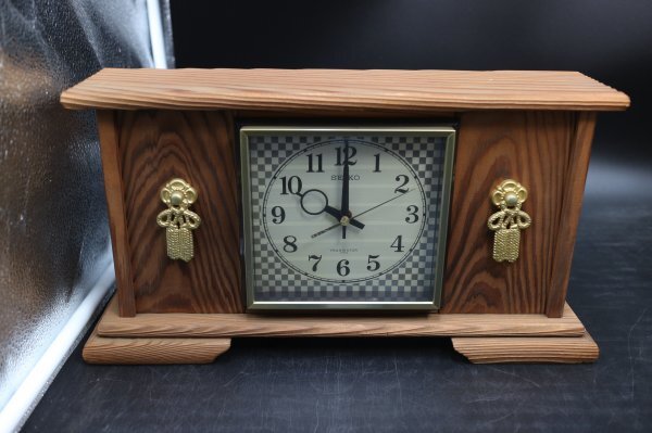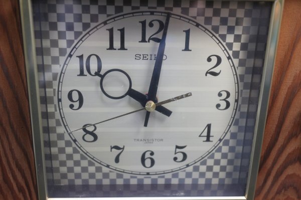 SEIKO/セイコー 型番不明 トランジスタ時計 ステップ式 木枠 動作確認済 置き時計 アンティーク レトロ