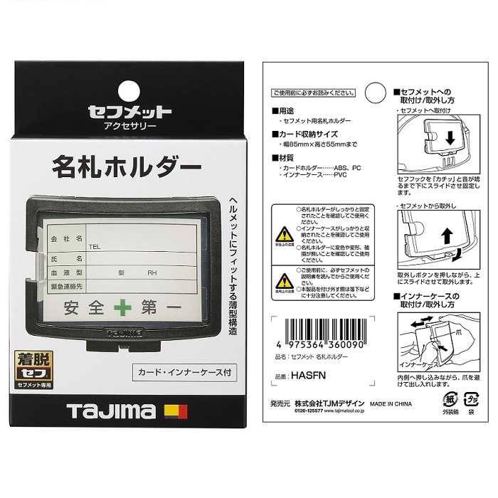 タジマ(TJMデザイン)製のセフメット対応サイドセフツール セフメット 名札ホルダー のHASFN(黒)です。