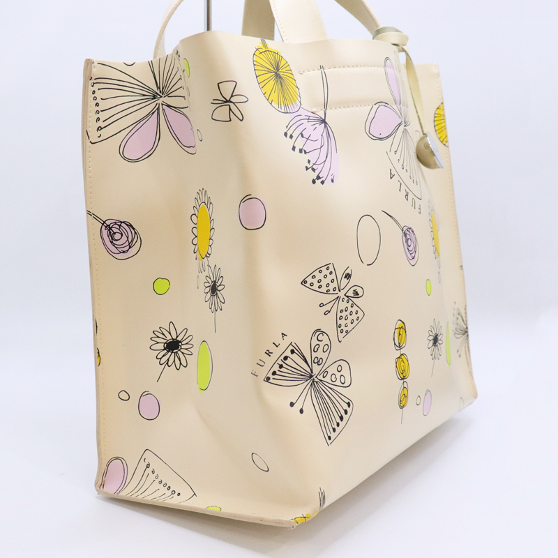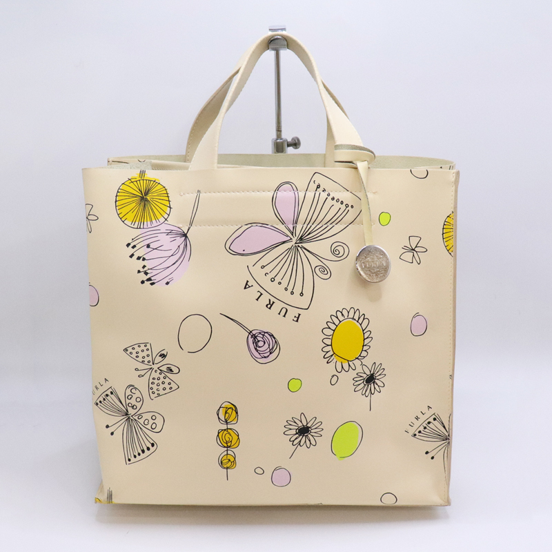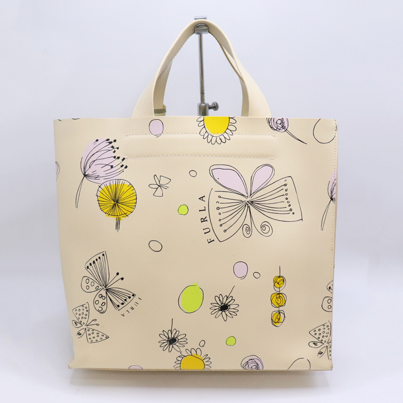 商品名 FURLA フルラ バタフライモチーフ トートバッグ レザー レディース 蝶 花柄 ベージュ バッグ 鞄 中古 良品 送料無料!