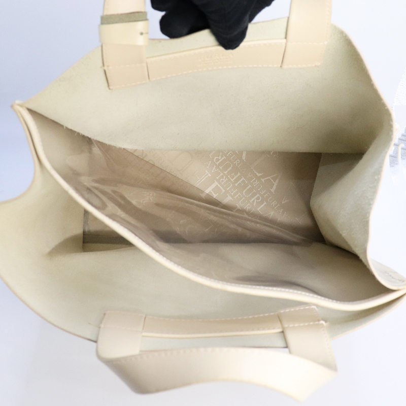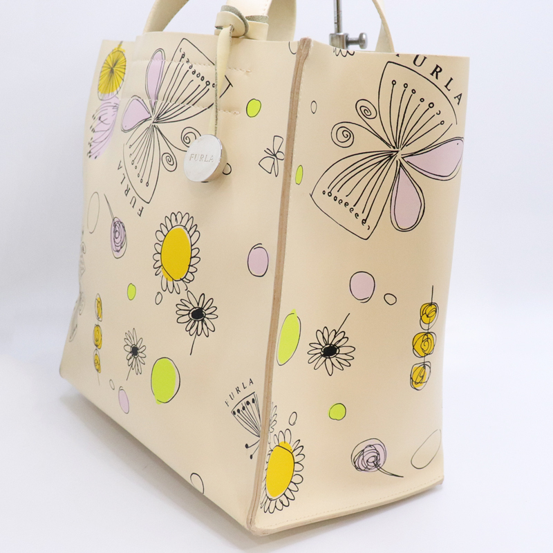 FURLA フルラ バタフライモチーフ トートバッグ レザー レディース 蝶 花柄 ベージュ バッグ ハンドバック 鞄 中古 良品 送料無料!