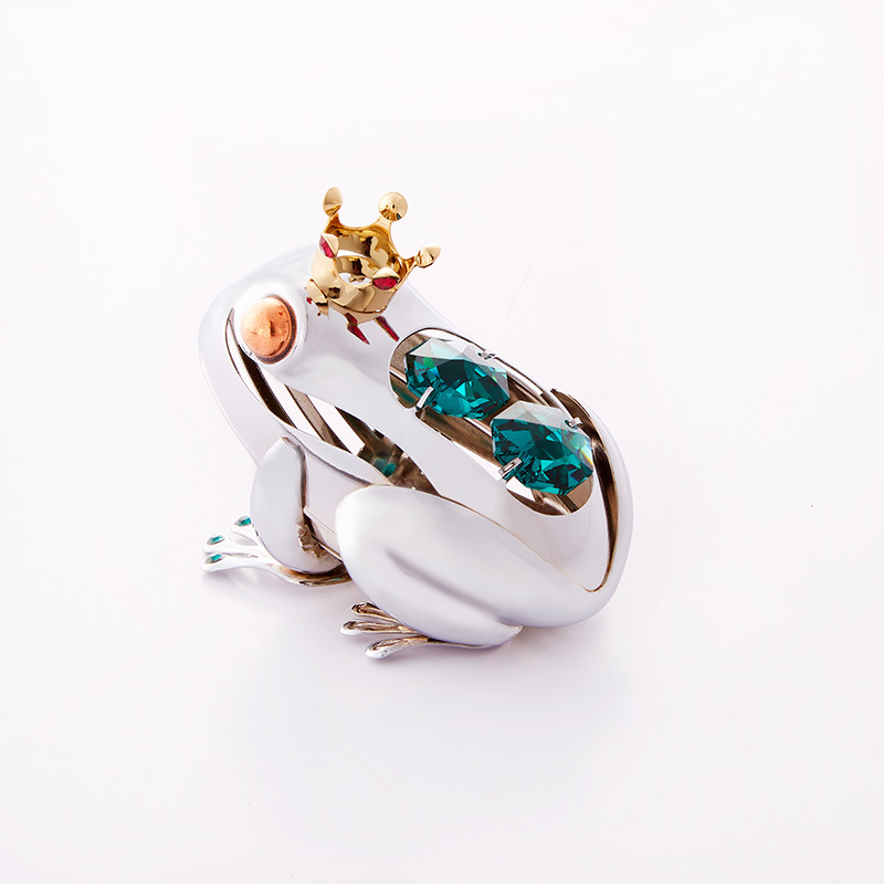 スワロフスキーが輝く銀白色のカエルオーナメントです。