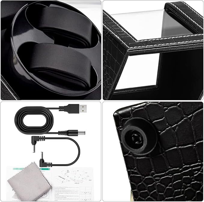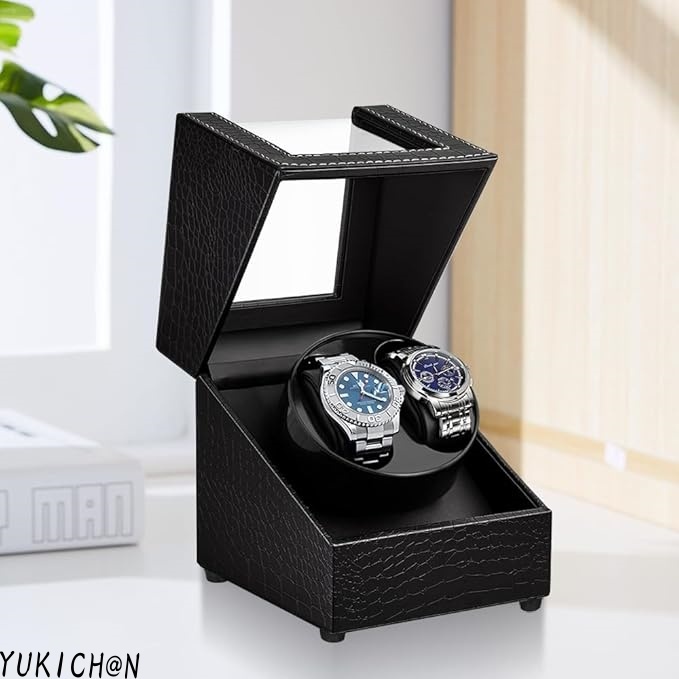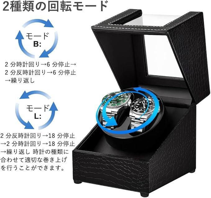 ワインディングマシーン 2本巻き ウォッチワインダー 新型の腕時計自動巻き上げ機、男女の腕時計は全部使えます ブラック