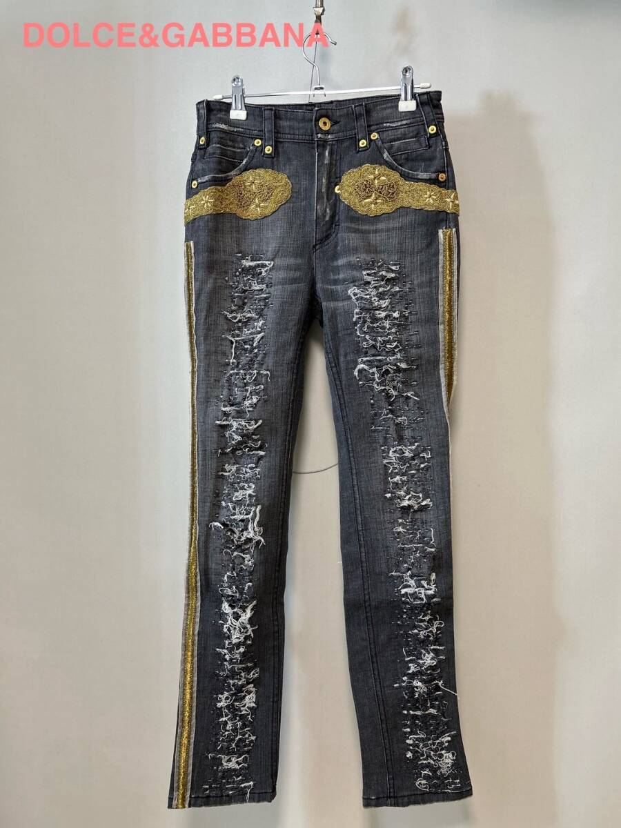JJ0153★9 高級 即完売 DOLCE&GABBAN ドルチェ&ガッバーナ ダメージ加工 ビジュー デニム ジーンズ パンツ vintage archive JPタグ