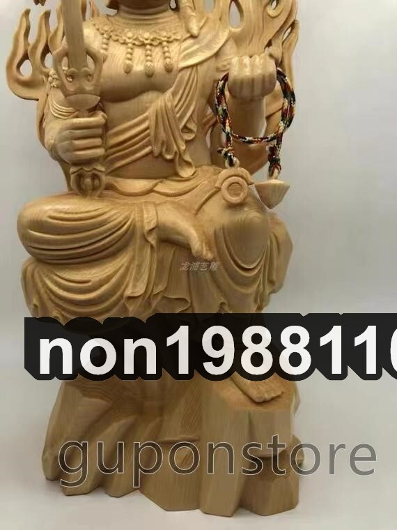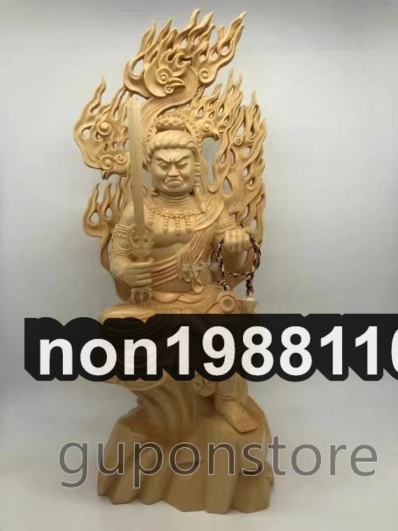 最新作 総檜材 木彫仏像 仏教美術 精密細工 仏師で仕上げ品 不動明王座像 高さ34cm