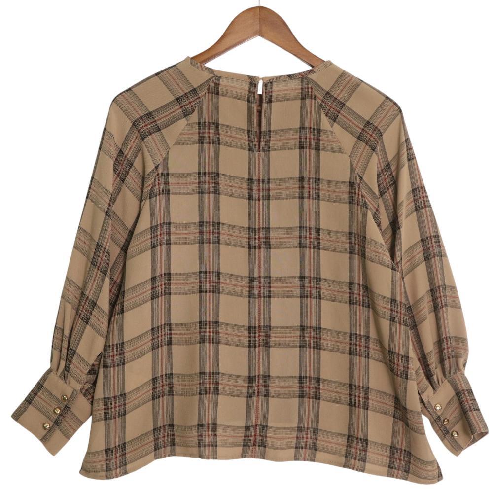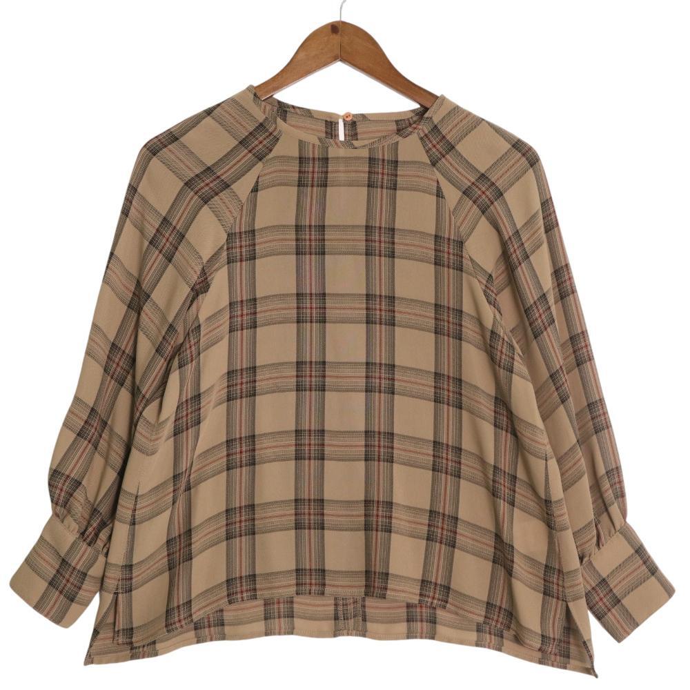 ・商品名【ナチュラルビューティーベーシック カチオン染 チェック ブラウス シャツ 長袖 プルオーバー S ブラウン 017-0210483 レディース】