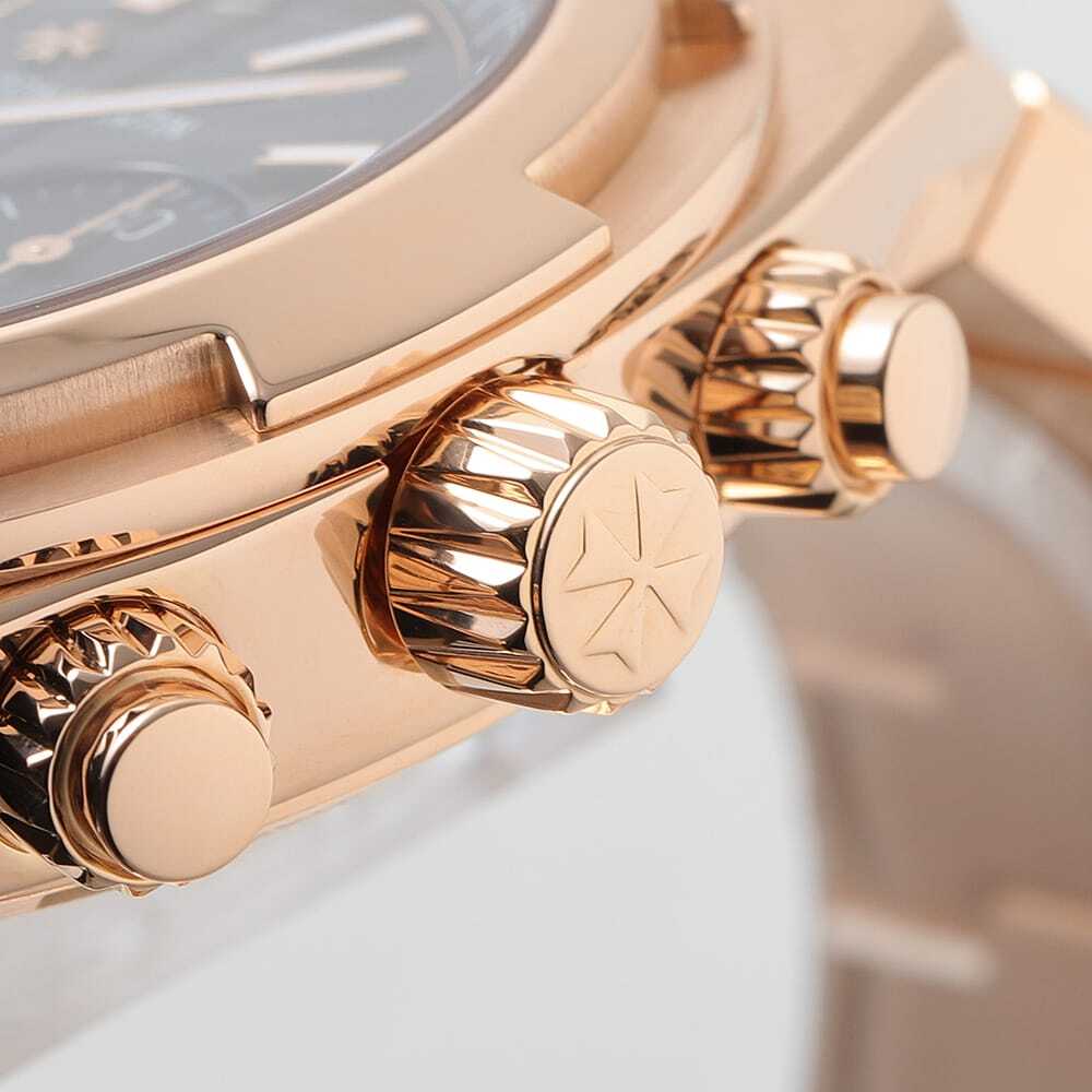 モデル情報 | 「海を渡る」という名にふさわしく、優れた防水性と耐磁性を備えたヴァシュロンコンスタンタンのスポーツウォッチコレクション"オーヴァーシーズ"。軟鉄製インナーケースによる25,000アンペアの耐磁性能と、15気圧の防水性を兼ね備えたこのモデルは、実用性とラグジュアリーを両立させた現代的なタイムピースです。2022年発表の本モデルは、コレクションを象徴するブルーラッカー仕上げのダイアルを備えた18Kピンクゴールドケースを採用。ベゼルやブレスレットに見られるマルタ十字のモチーフがブランドの個性を際立たせ、シースルーバックからは、方位図から着想を得た装飾が施された22Kゴールド製ローターや、ブランドのシンボルであるマルタ十字が刻まれたピラーホイールを眺めることができます。 |