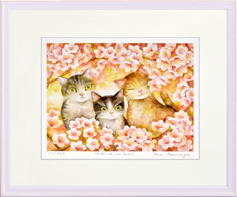 ジークレー版画 額装絵画 とみながまい 「はじめてみつけたおはな」 四ッ切