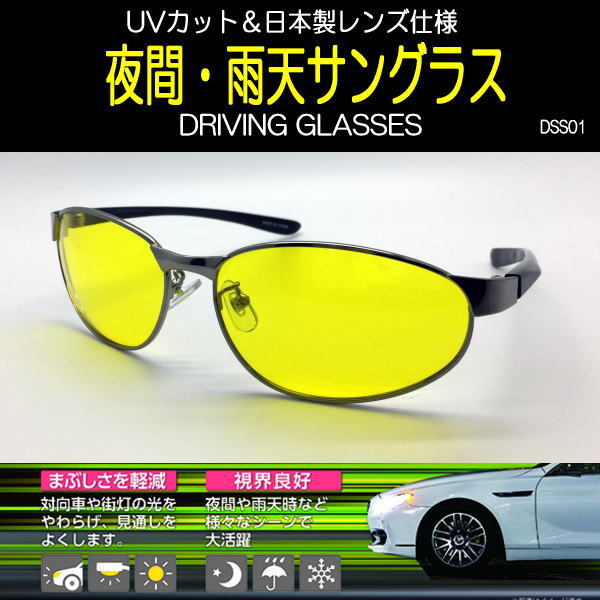 夜間/雨運転用 サングラス 日本製レンズ仕様 UVカット 視界良好 DRIVING SUNGLASSES ドライビンググラス DSS01.