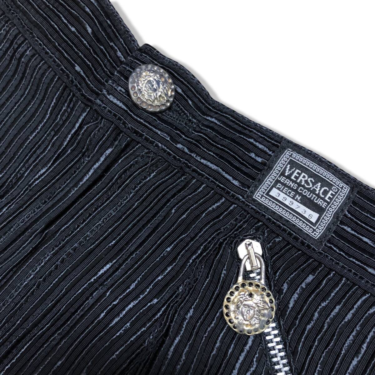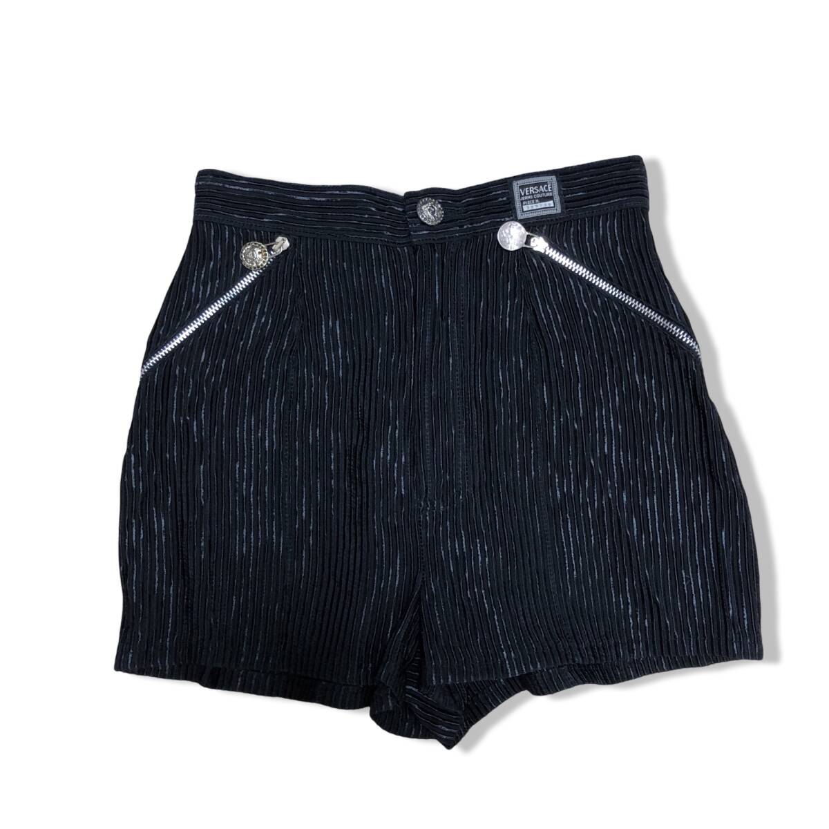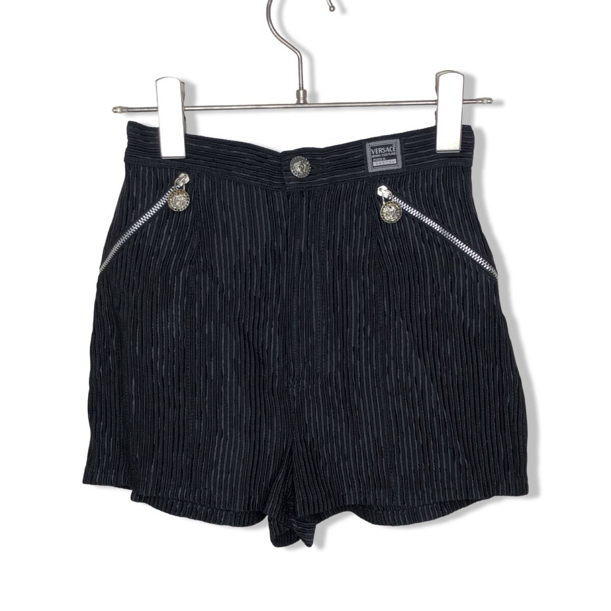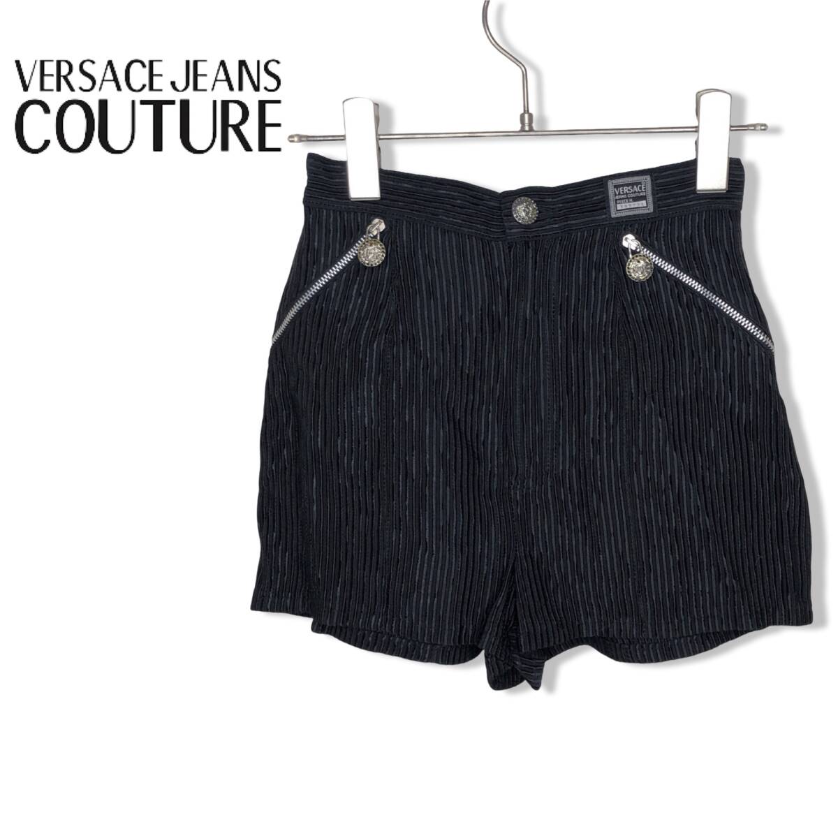 ☆VERSACE JEANS COUTURE ヴェルサーチジーンズクチュール☆光沢 ジップ ショートパンツ キュロット 黒 ブラック size 24/38