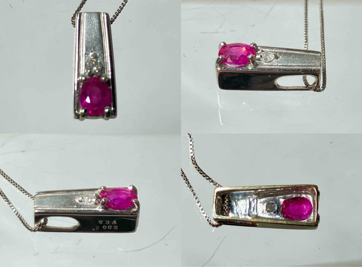 ・石のみサイズ(ルビー) 縦約0.4cm × 横約0.3cm ・【 0.34 】の刻印あり。 ・チェーン幅約0.1cm | ||||||