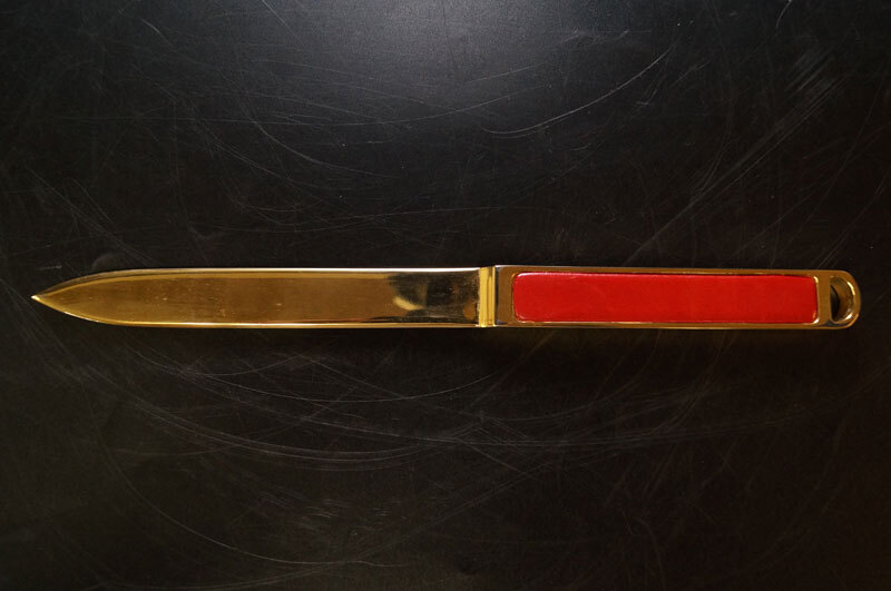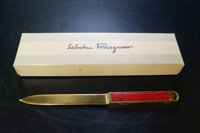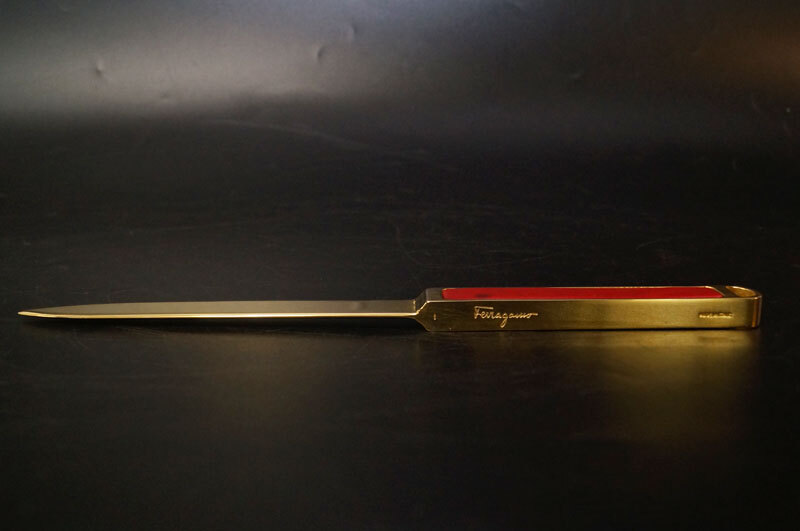 | ye95-Salvatore Ferragamoサルヴァトーレ フェラガモ レターオープナー ゴールド レッド ペーパーナイフ 箱付 事務用品イタリア製 |