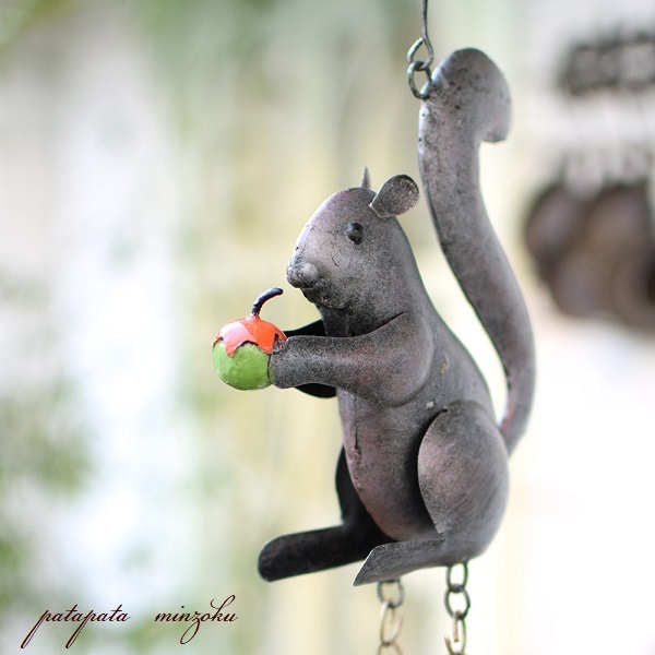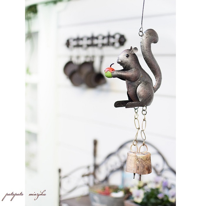 リス ブリキベル ハンギング ベル アンティーク調 ドアベル ベル チャイム オブジェ ディスプレイ