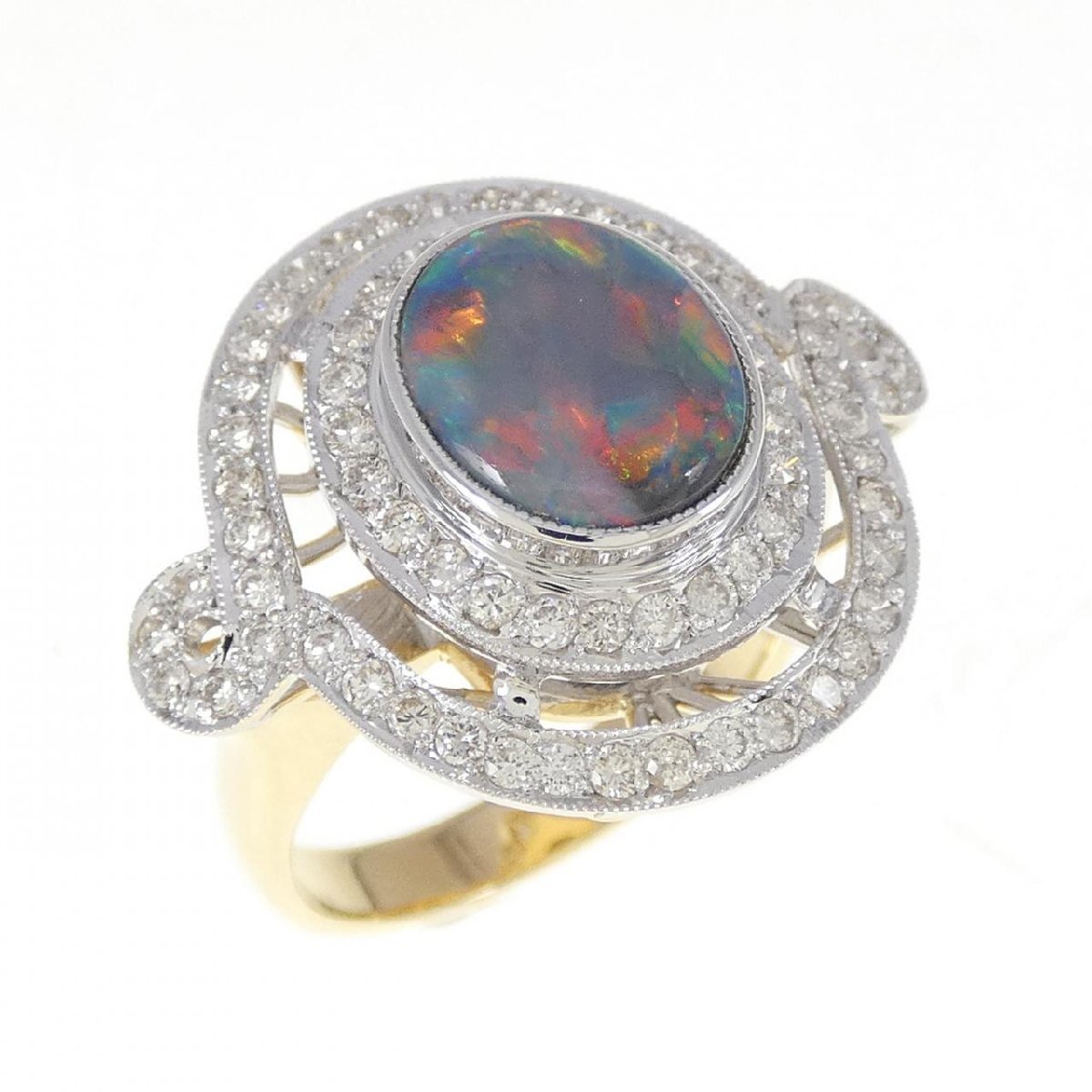 グリーン、レッド、ブルーの遊色効果が浮かぶ地色のブラックオパール。装いのアクセントになってくれそうな存在感あふれるジュエリーです。