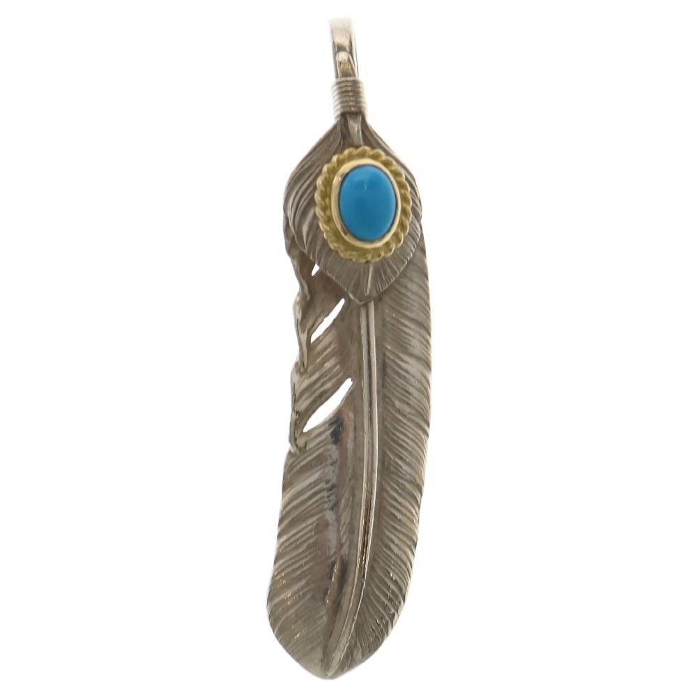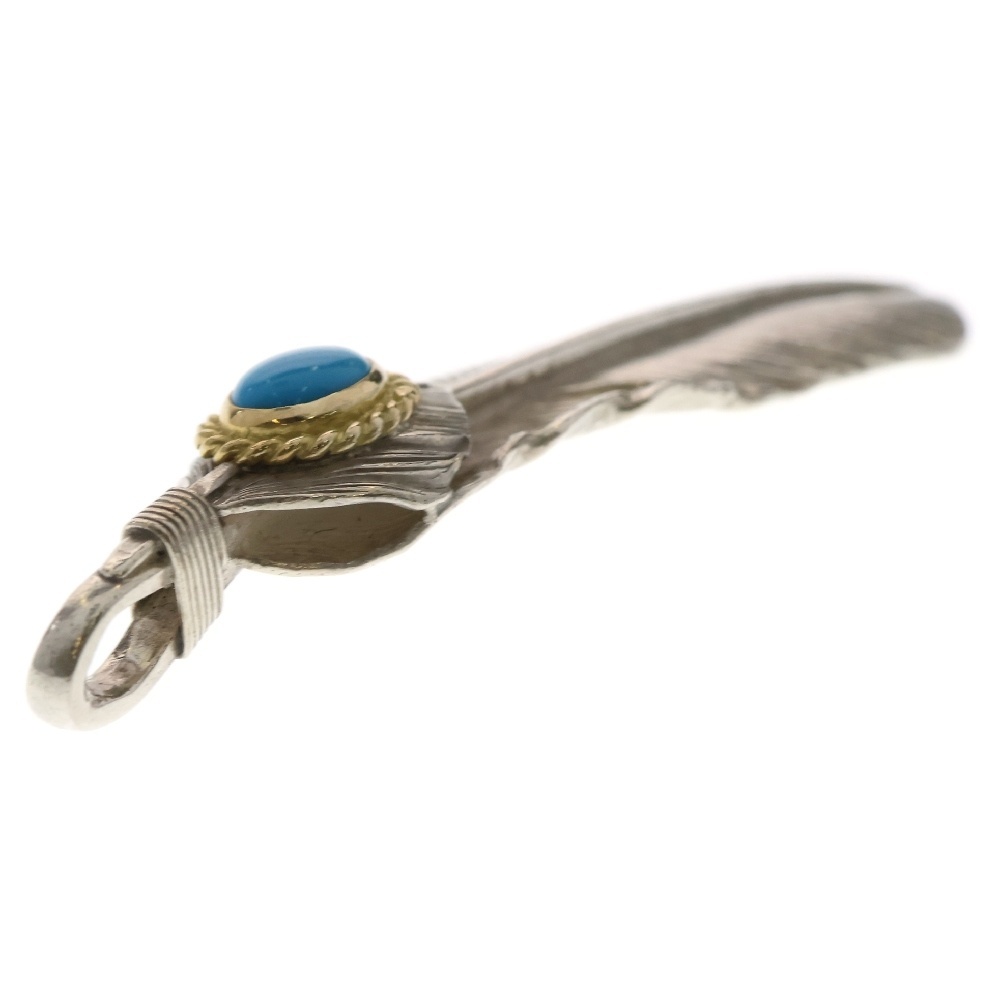 goro's ゴローズ 【現行】上銀金縄ターコイズ特大フェザー 右向き ペンダントトップ シルバー/ゴールド