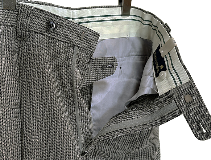 2タックでジップ式、1フックと2ボタン留めです。
