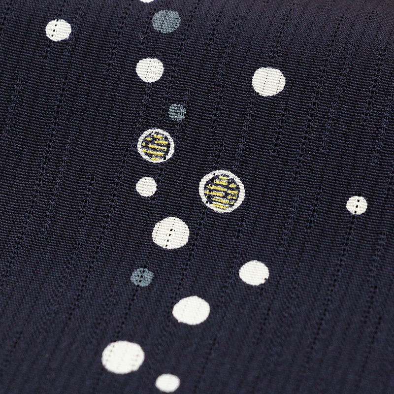 | ★商品説明 | ■「単衣・夏兼用」で制作された涼感デザイン水玉工芸文で製作しています。 ■特撰の伝統工芸涼感たて変り絽生地を使い、こだわりの濃紺色で創作した袋帯です。 ■5月~10月までのきものライフを一格上のお洒落袋帯が楽しませてくれます。 |