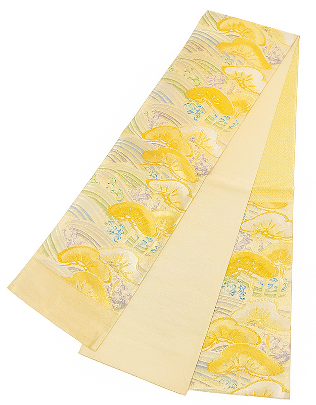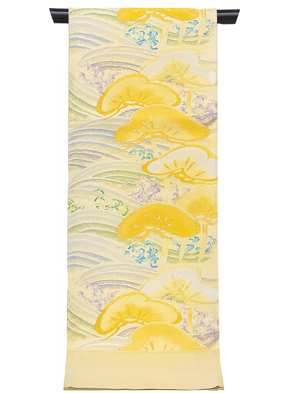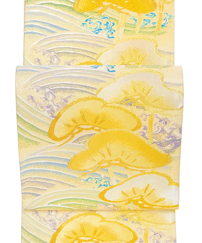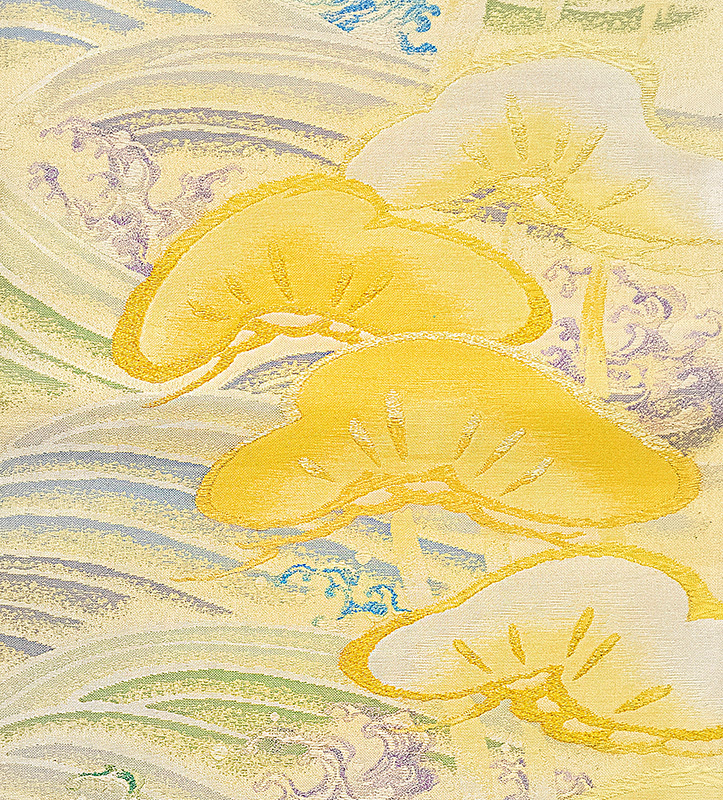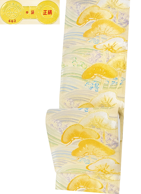 | ★商品説明 | ■貴重なつづれ糸を使用し、西陣伝統工芸本金箔錦織で名門橋本テル織物が制作した礼装袋帯です。 ■格調を大切に吉祥古代波松文をデザインした特撰品です。 ■上品に表現された逸品が、一格上の着姿を完成させます。 |