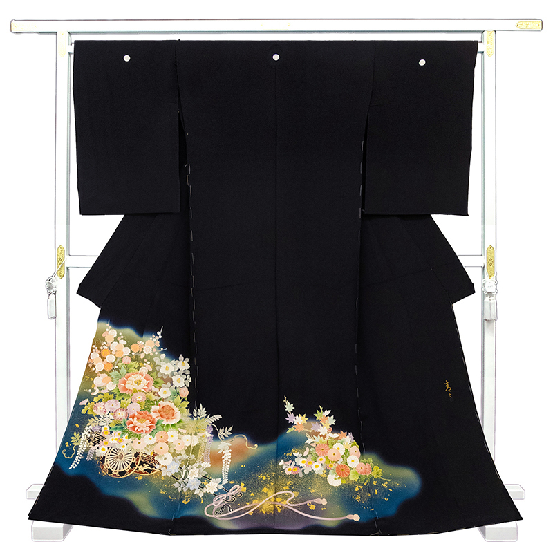 | ★品質・詳細 | ○地色 【こちらの地色は格調のある黒地です。】 ○絹織物 ○新品・未仕立の特撰黒留袖の仮絵羽です。 ○最高級濱ちりめん生地使用 ○参考上代 1,580,000円 |