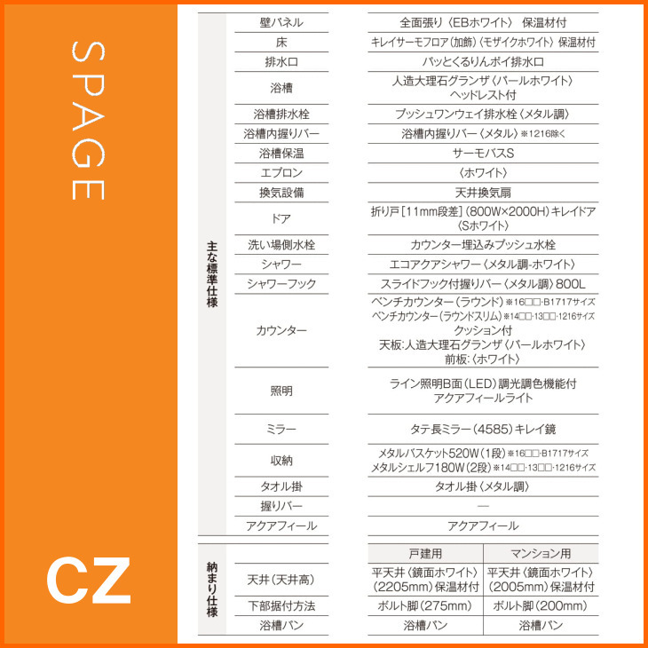 | 商品名 | リクシル システムバスルーム スパージュ 1316 CZタイプ マンション用 Y |