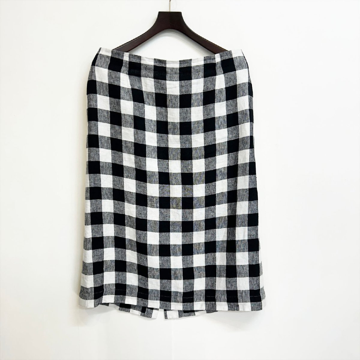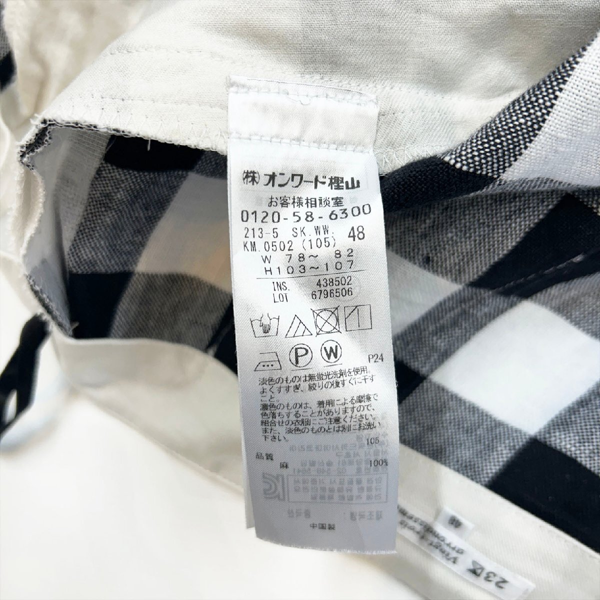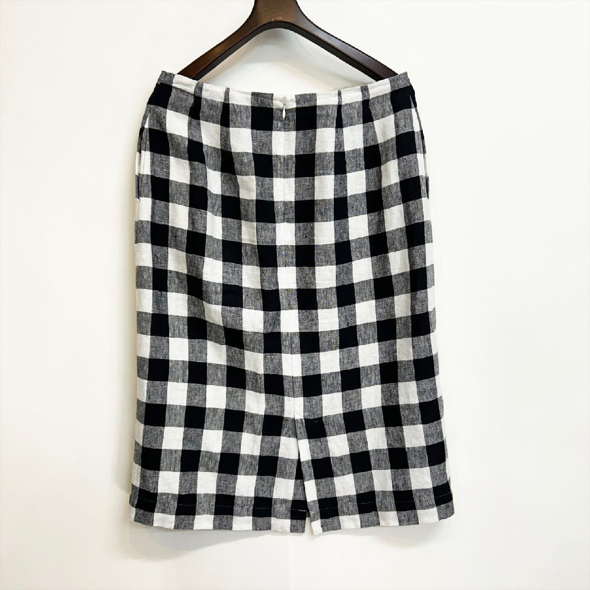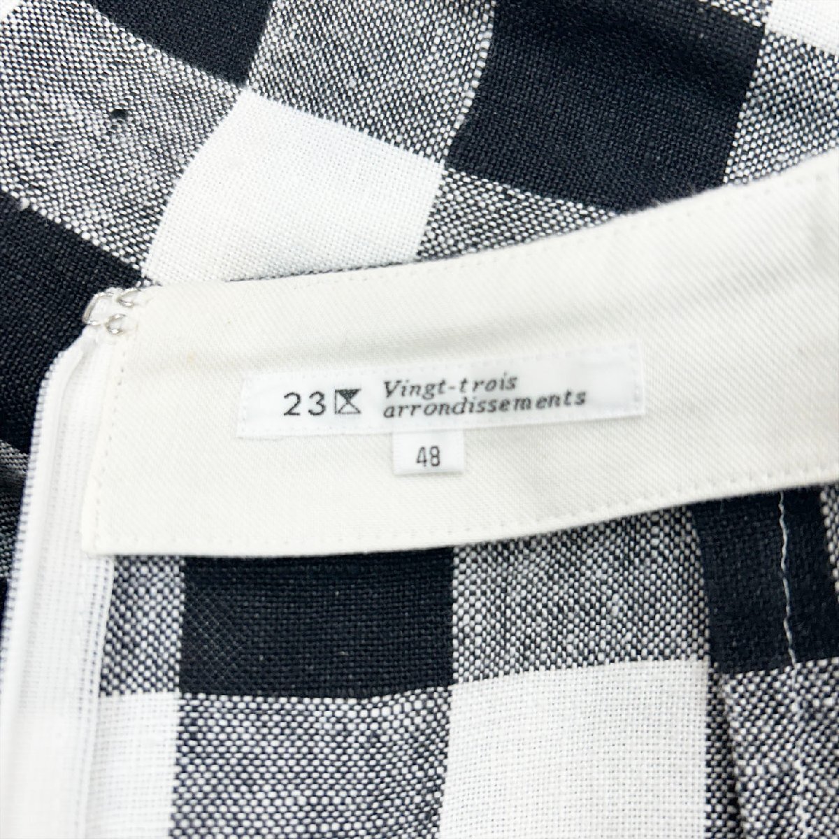 【大きいサイズ】 23区 ブロック チェック スカート リネン サイズ48 Js6-21