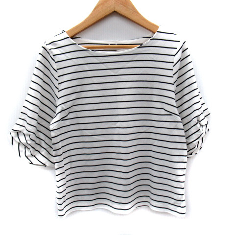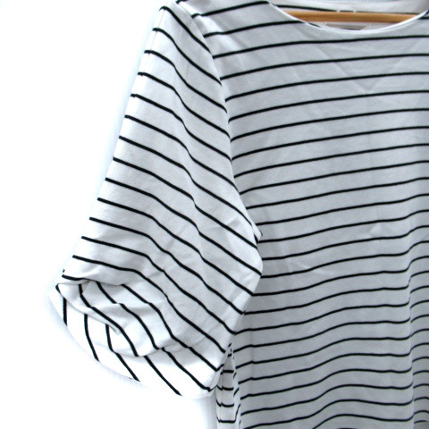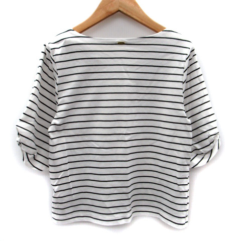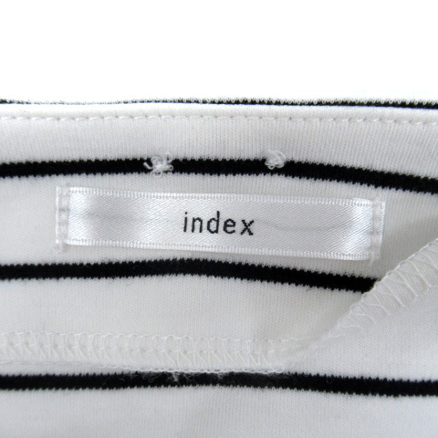 インデックス INDEX カットソー 五分袖 ラウンドネック ボーダー柄 M 白 ホワイト 黒 ブラック /SM24 レディース