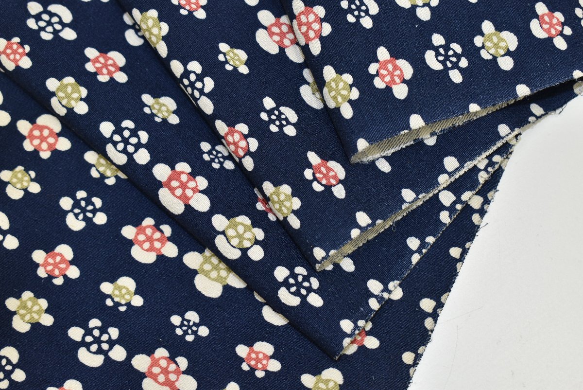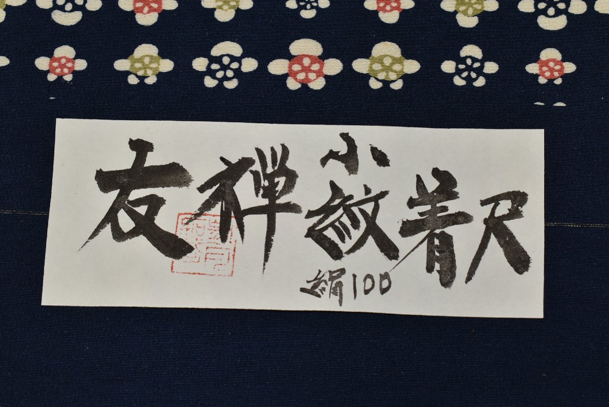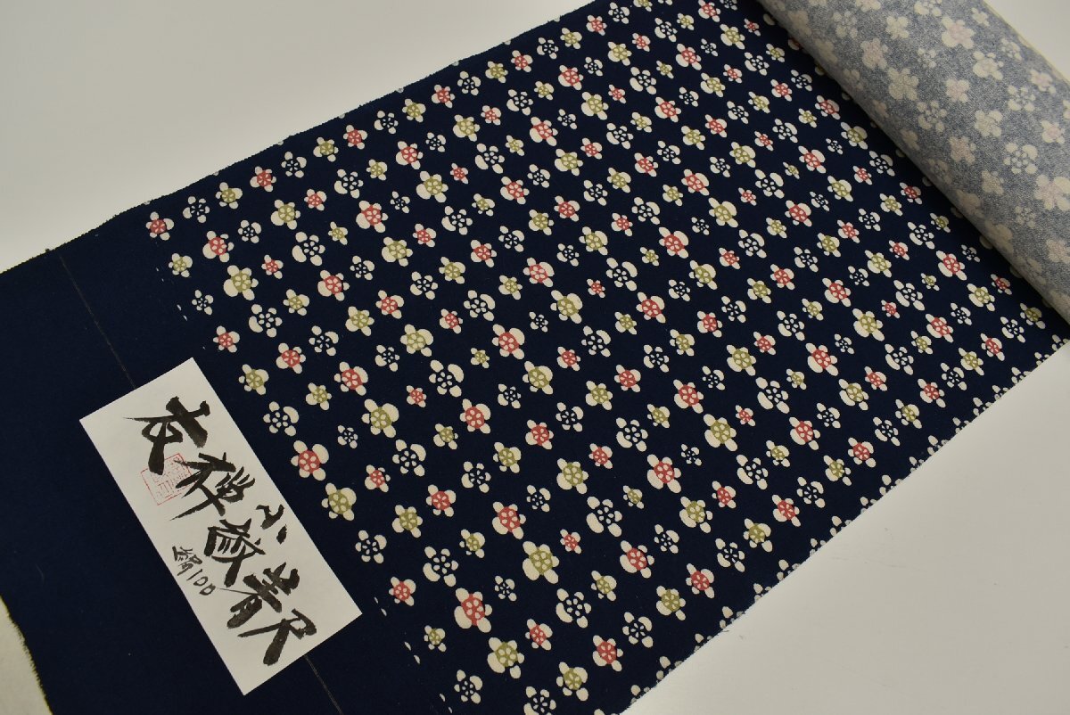 【ちどりや】未使用品 美品 正絹 小紋 友禅染め 着尺反物 型染め 小梅花文様 紺 Y312