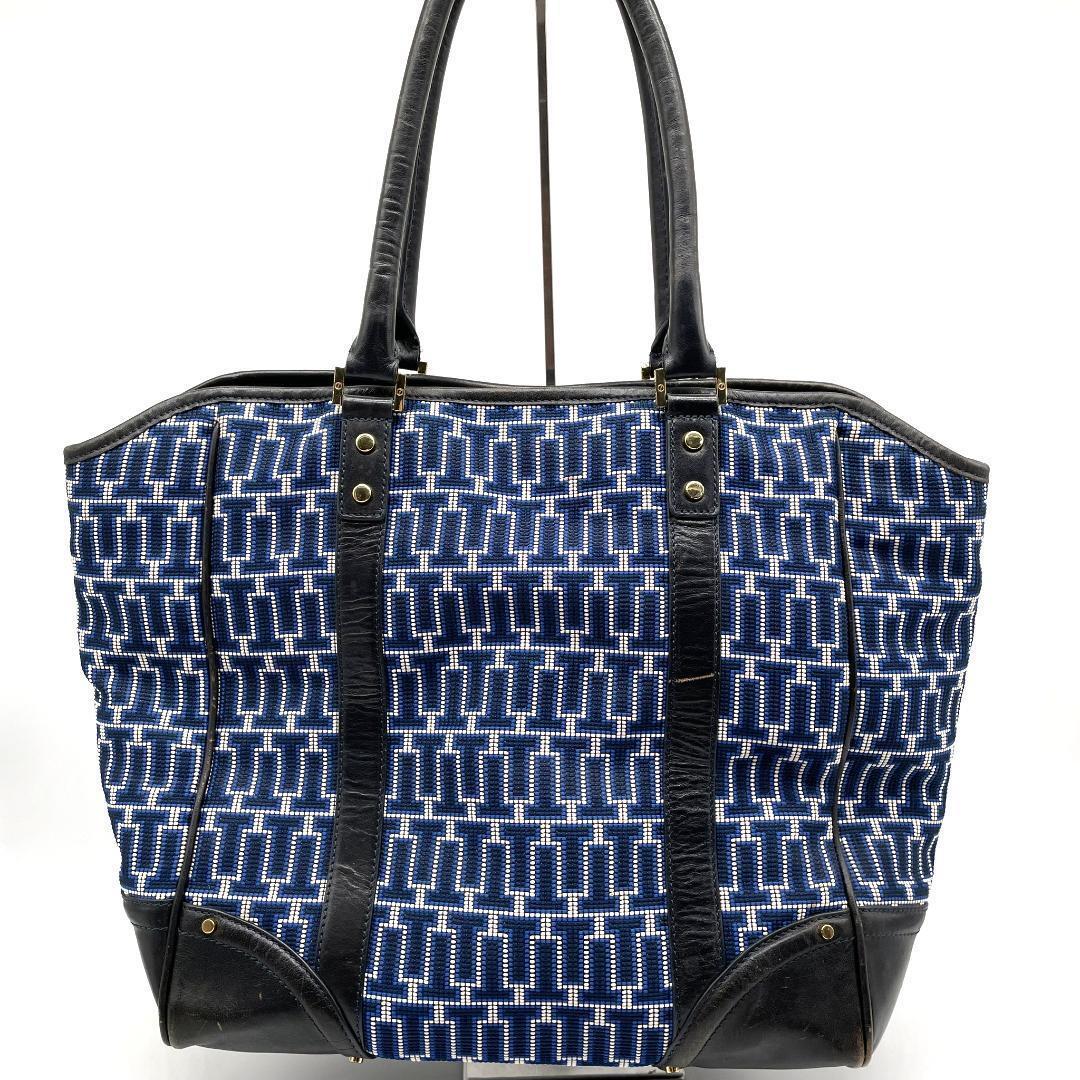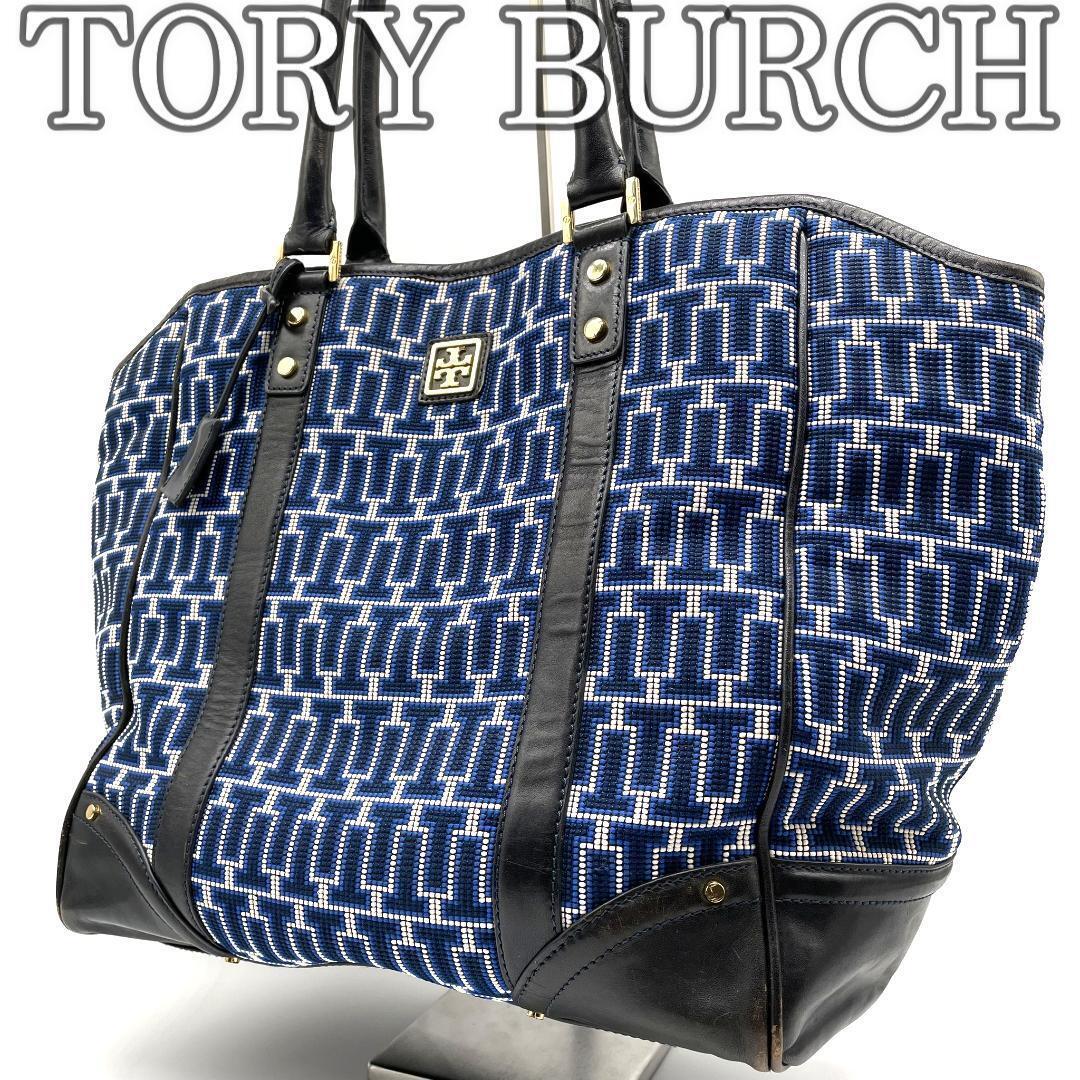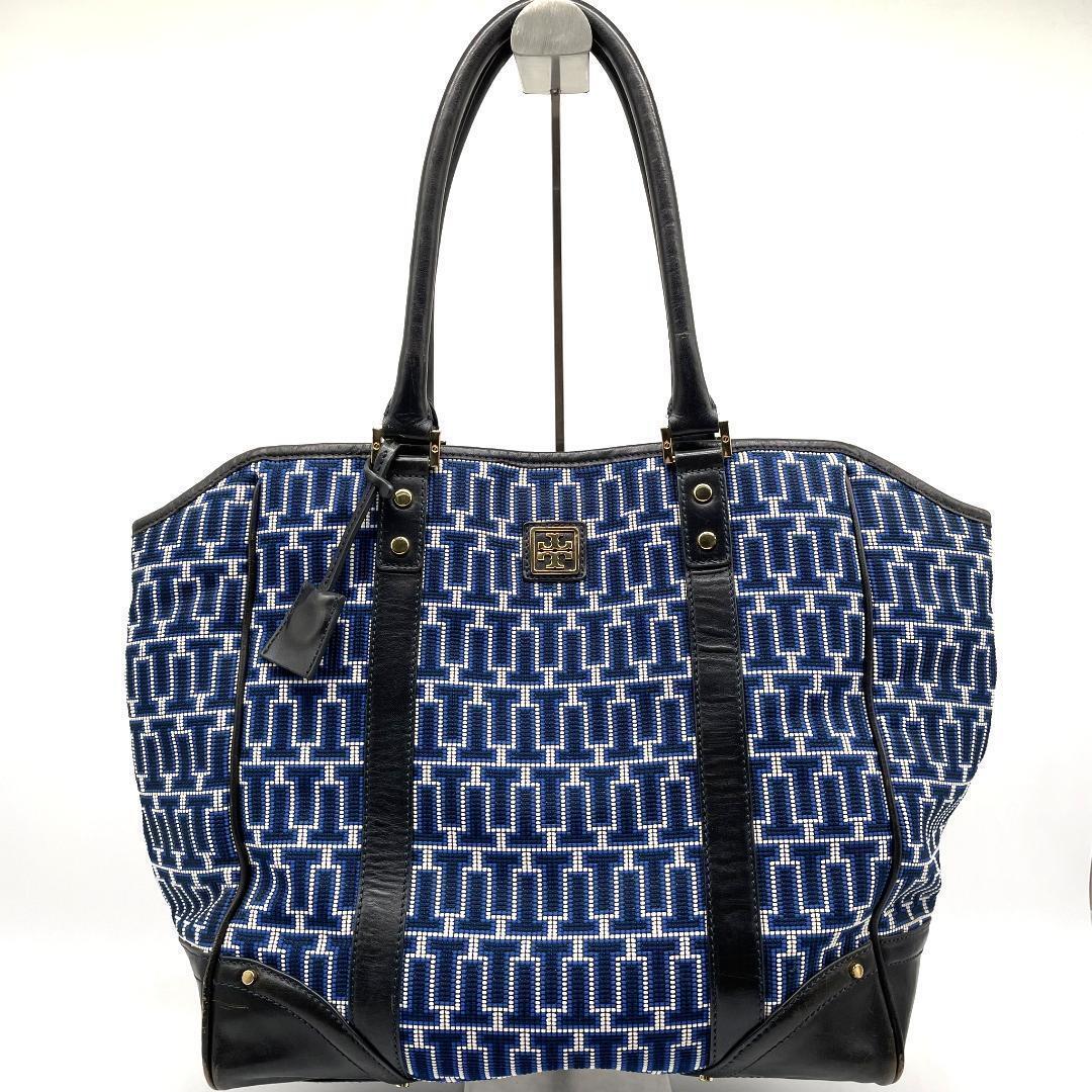 TORY BURCH トリーバーチ キャンバス レザー Tモノグラム ファブリック トートバッグ A4