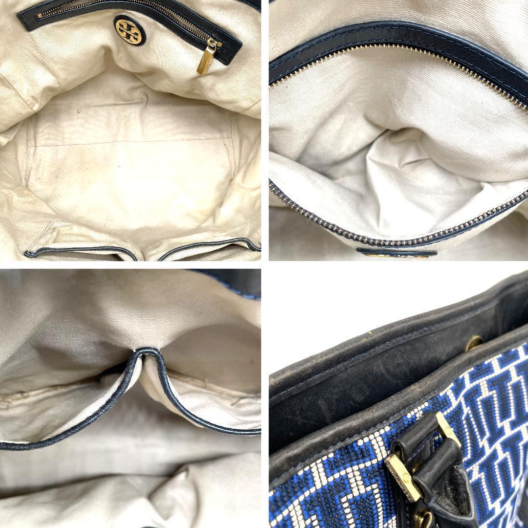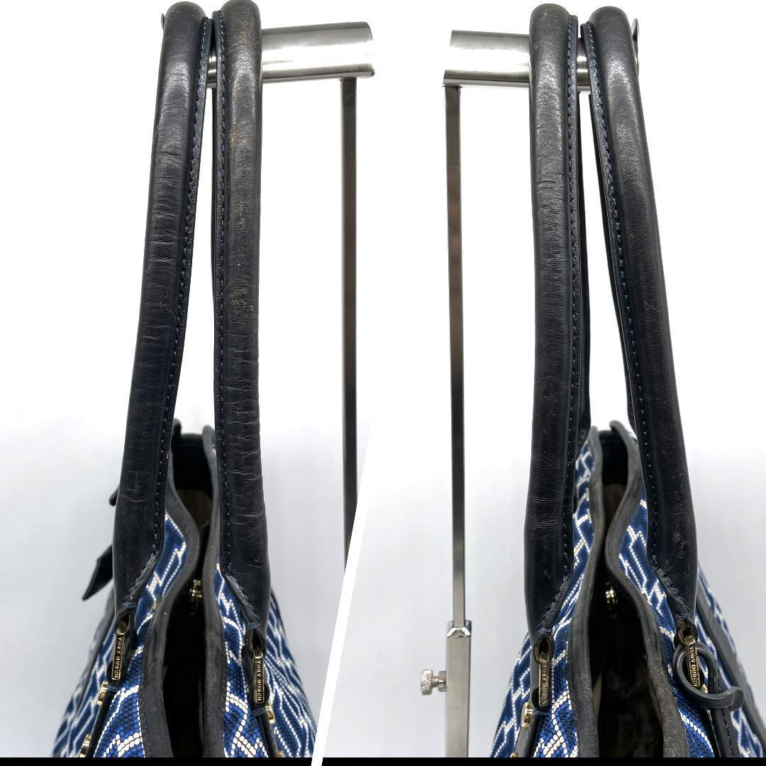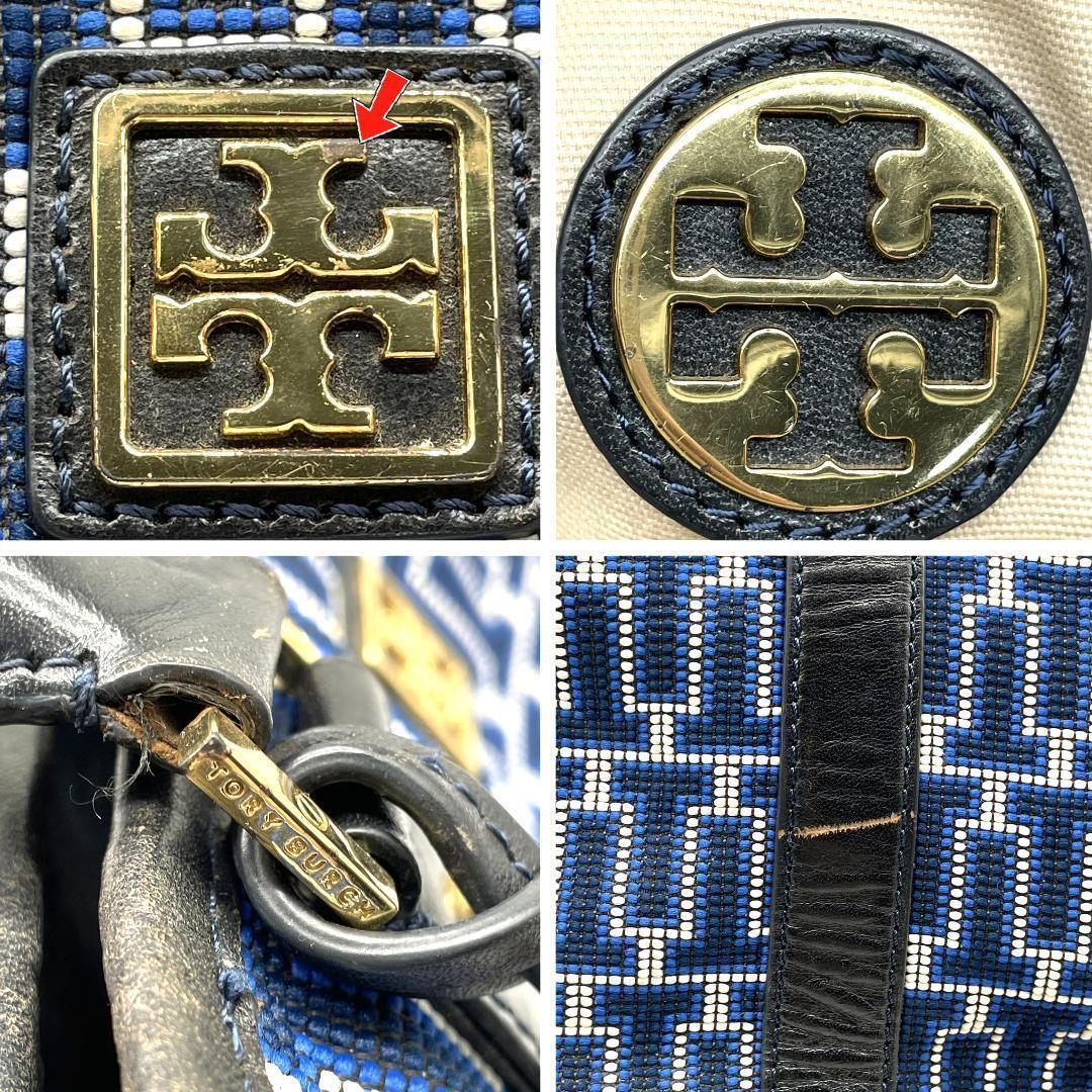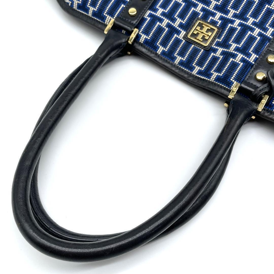 TORY BURCH トリーバーチ キャンバス レザー Tモノグラム ファブリック トートバッグ A4