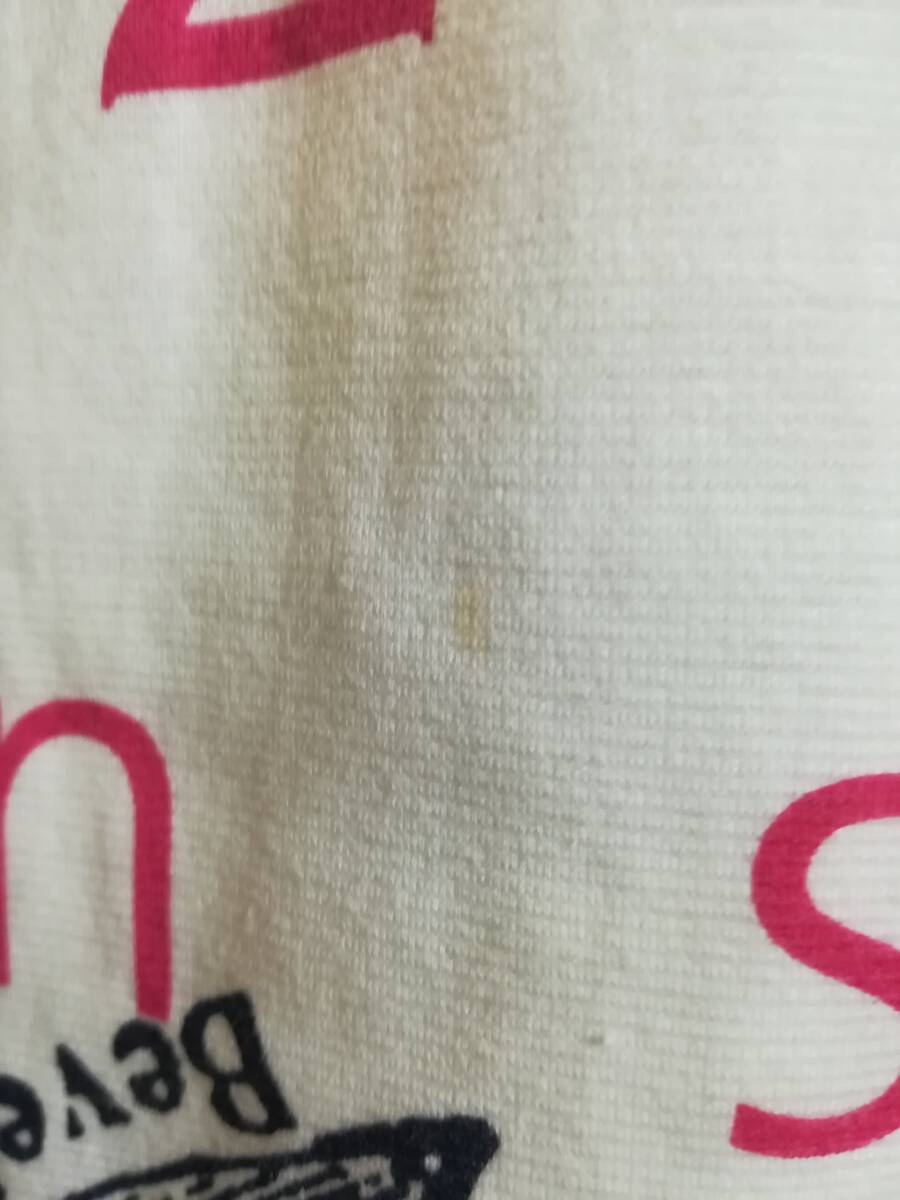使用状況:画像6.7枚目のように前身頃に2点汚れがあります。またウエストの四隅にハンガー跡があります。