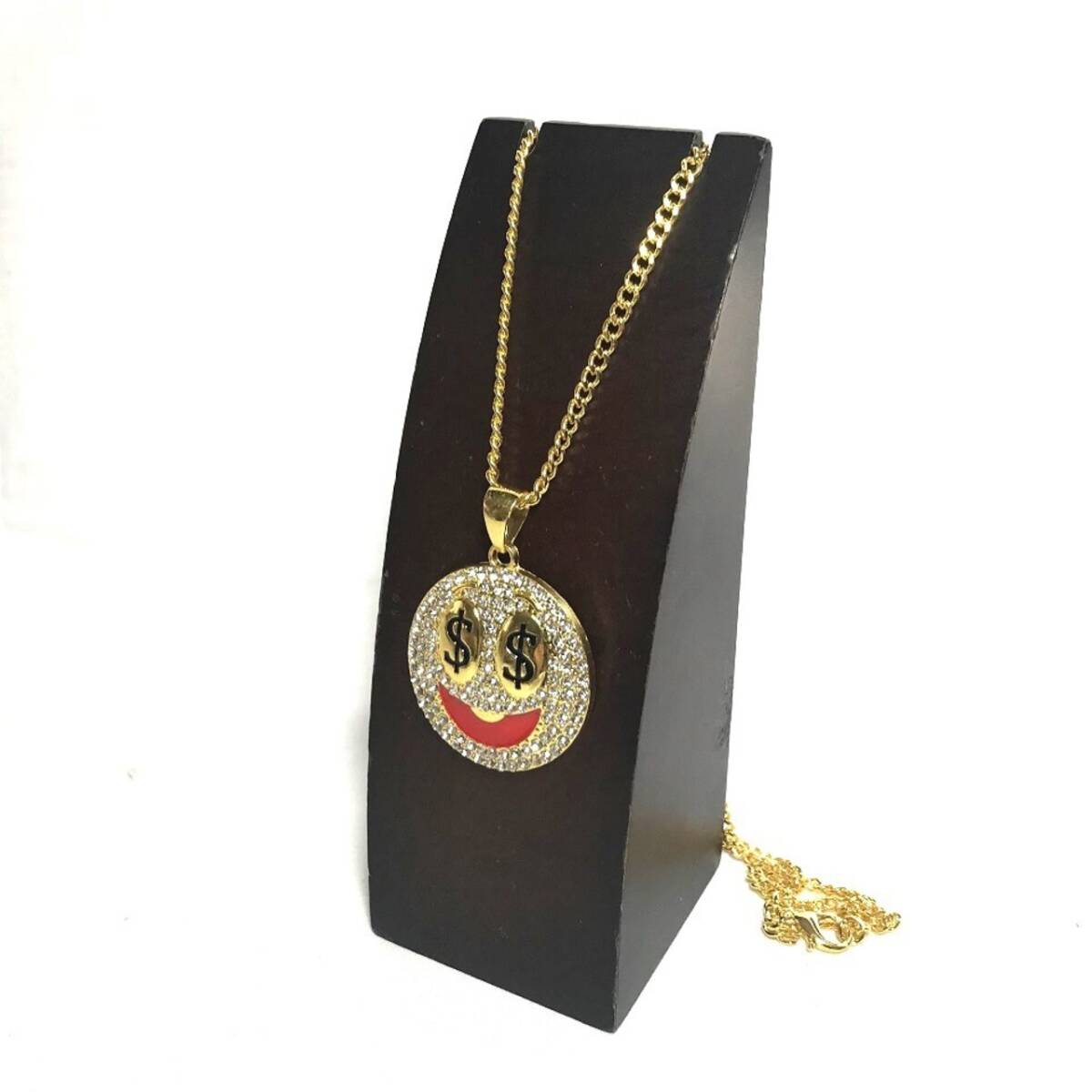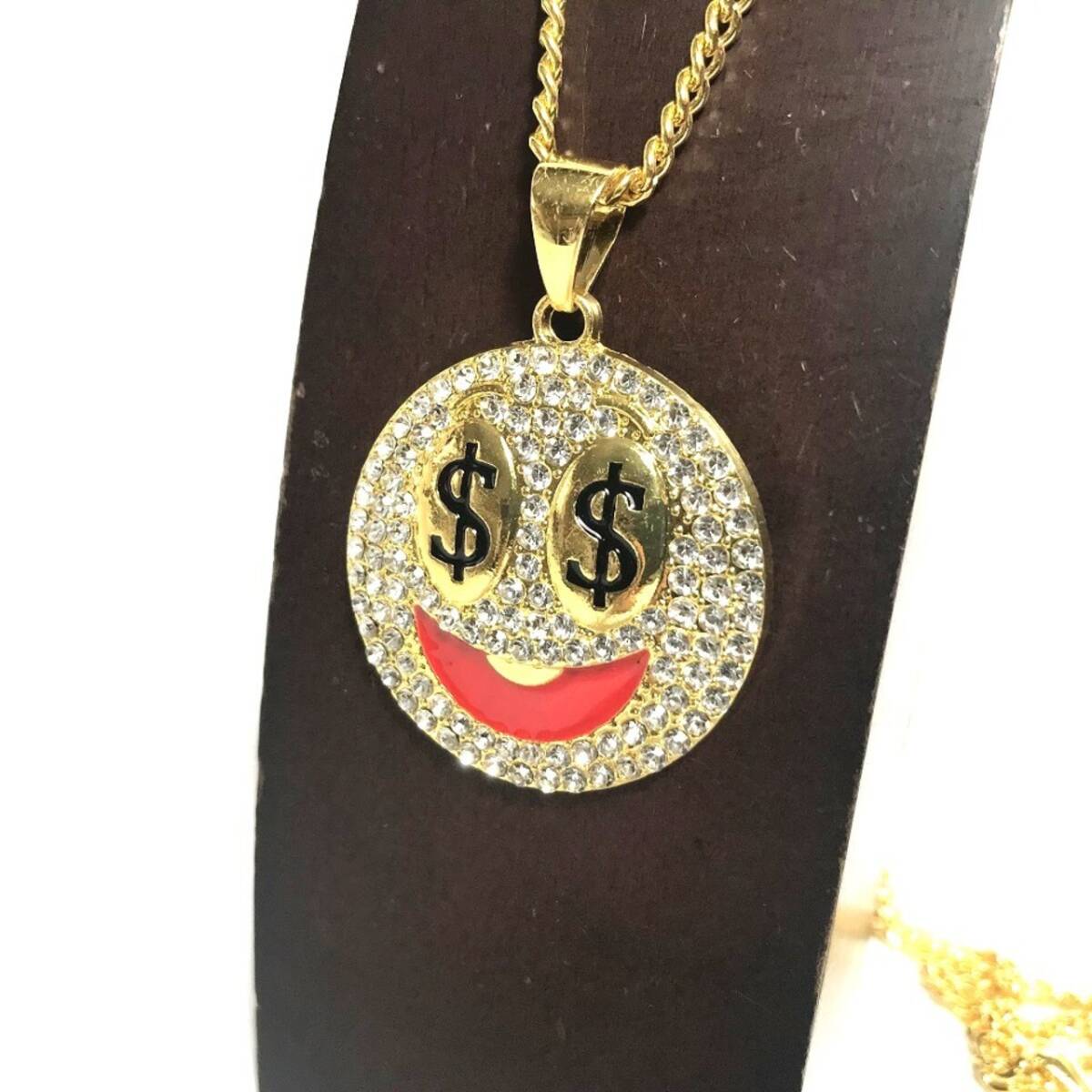 $ ドル スマイル ニコニコ ジルコニア ラインストーン ゴールド 金 GOLD ネックレス 396