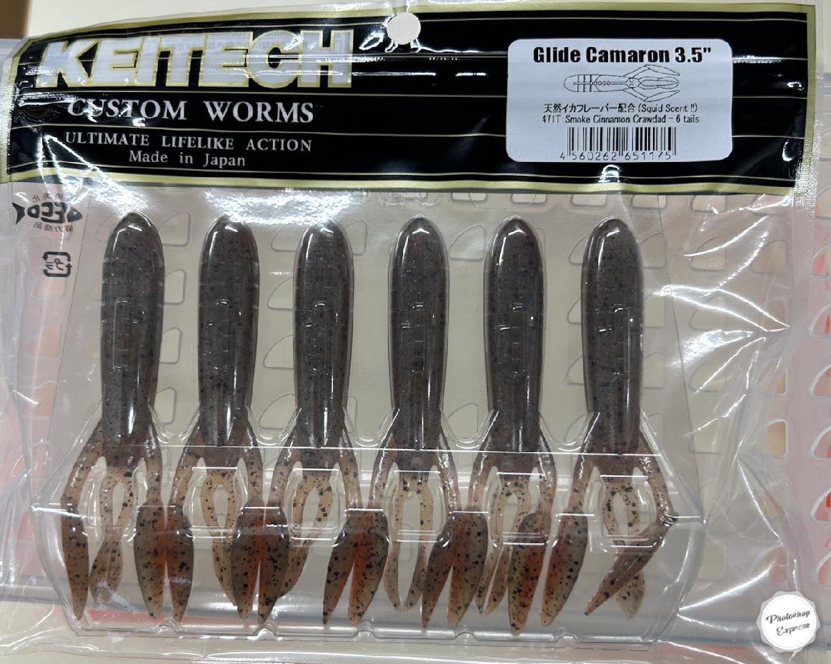 | ケイテック グライドカマロン 3.5インチ。重量:9.5g、 1パック6本入り。 これが、ケイテックのバックスライド“専用”ワーム バックスライド仕様の高比重ワームが釣れる理由のひとつに、文字どおり後方へのスライドフォールが挙げられます。同じカバー攻略でも、それはジグやテキサスリグにはけっして真似のできない芸当。 いや、数多あるなかで、アングラーから逆の方向へと慣性が働くルアー自体、たぐいまれ。 だから『グライドカマロン』の開発は、“いかにバックスライドさせるか”に重きを置きました。 魚にこたえを聞いた理想的なフォール姿勢とスライド幅は、ハサミやヒゲを含めたボディデザインとマテリアルのたまもの。 もちろん、フォール後のボトムステイやロッドワークでアクションを与えた際の挙動、カバーの抜け方(抜きやすさ)、回収のしやすさも徹底的に検証しています。 オープンウォーターのミドストやボトストなど、自由な発想で使い方の幅を拡げていくのは釣りの醍醐味ですが、まずはノーシンカーリグでの、バックスライドを活かしたシャローカバー攻略を強くおすすめいたします。 フックは、ワイドギャップオフセットタイプ#3/0もしくは#4/0を推奨。 |