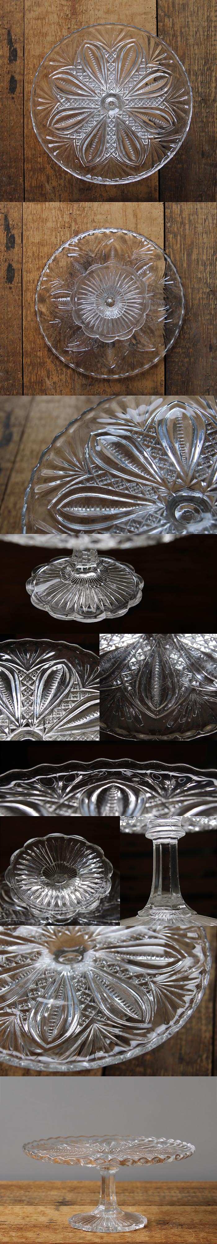 イギリス アンティーク ガラスケーキスタンド コンポート皿 プレスガラス インテリア 雑貨 店舗什器 K-489