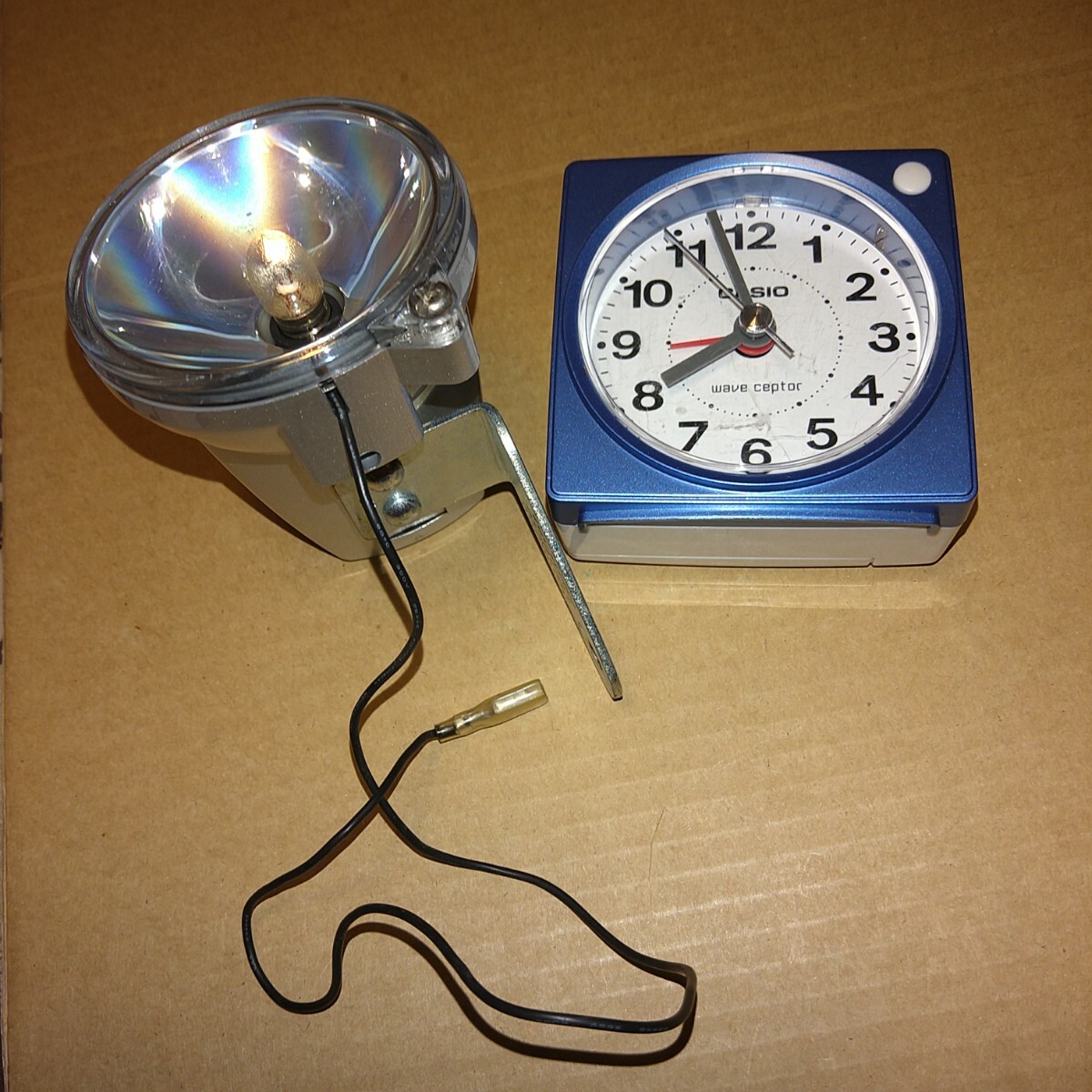 目覚まし時計とメジャーは撮影時の固定の為に使用したのでライトしか送りませんのでご注意ください。
