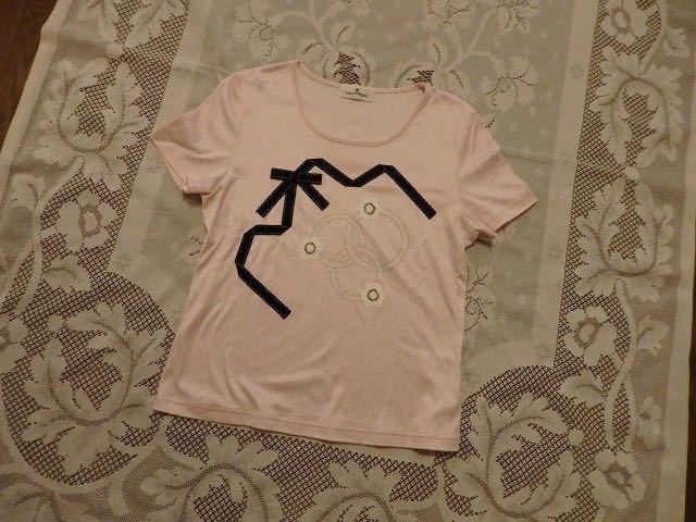 ・サイズ:40 ・素材:指定外繊維(リヨセル)70% コットン30% リボン部分~ポリエステル100% ・平置実寸:身幅44(脇の下) 肩幅37 袖丈18 着丈52.5 <素人採寸ですので多少の誤差はお許し下さい> ・USEDー綺麗。数回の着用です ・めだった汚れシミは無い様に思いますが1ヵ所引っかけと1箇所テンのシミがあります。やや使用感がある、箇所もありますが気にならない程度です ・手洗い可能です ・淡いピンク色になります ・黒のグログランテープのモチーフがアクセントになっています。ビーズが付いたお花プリントも可愛いです **汚れ、シミなど出来る限りチェックしておりますが、万一見落とし等ございましたらお許し下さい** |
