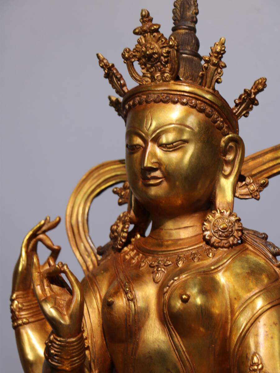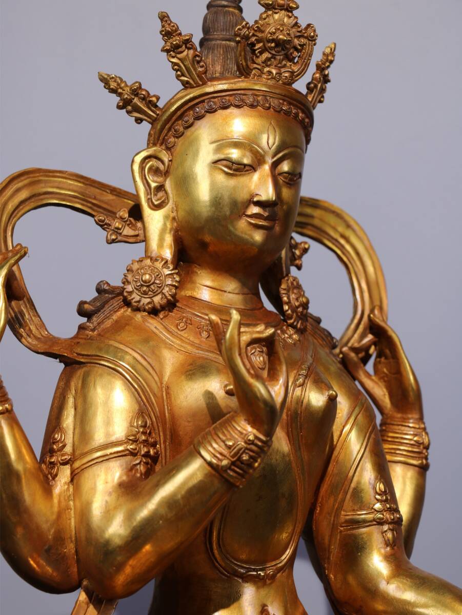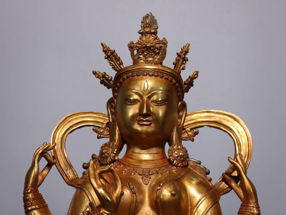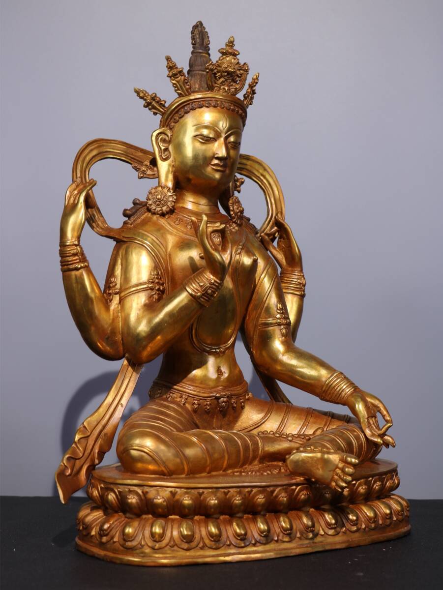 旧蔵 清 純銅塗金仏像【四臂觀音菩薩】 奉納されていた 供養品 銅製品 極細工 中国古玩 骨董品 古美味 206-01