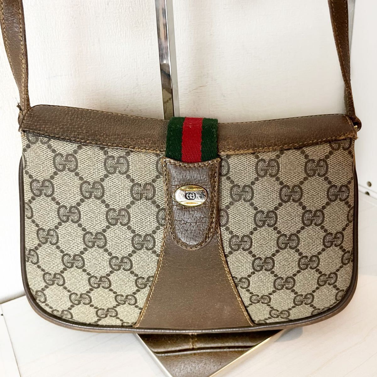 GUCCI グッチ ショルダーバッグ バック 肩掛け ヴィンテージ シェリーライン インターロッキング ブランドロゴ GG ゴールド金具 PVCレザー