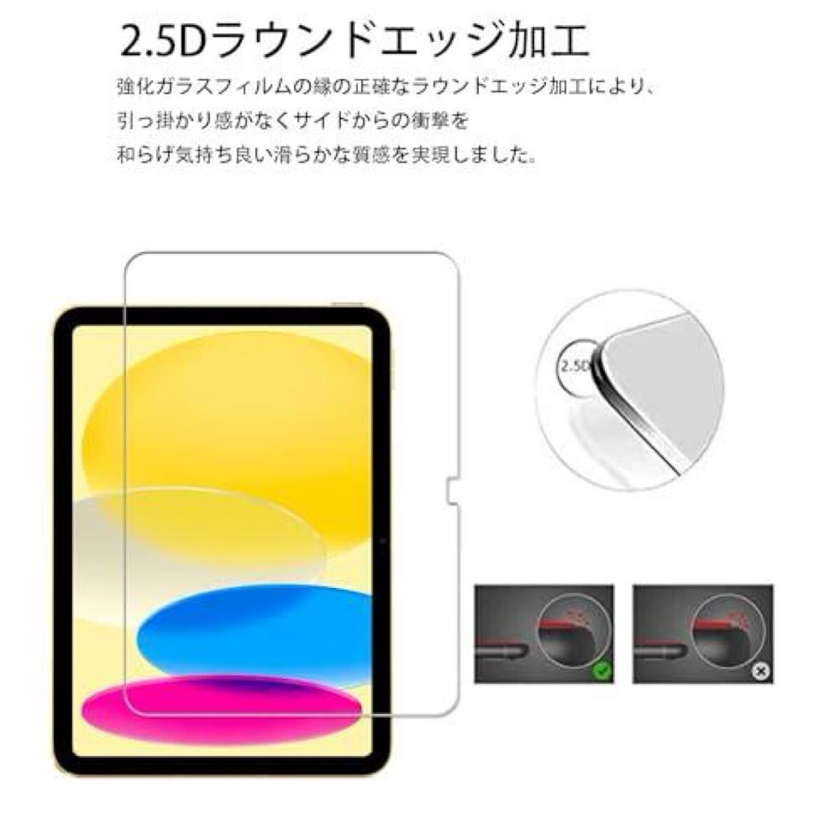 高硬度&耐衝撃性 ipad 10世代 フィルム 9H硬度の全面フルカバーガラスフィルムなので角割れやガラスのヒビ割れを防止画面保護を最大化。