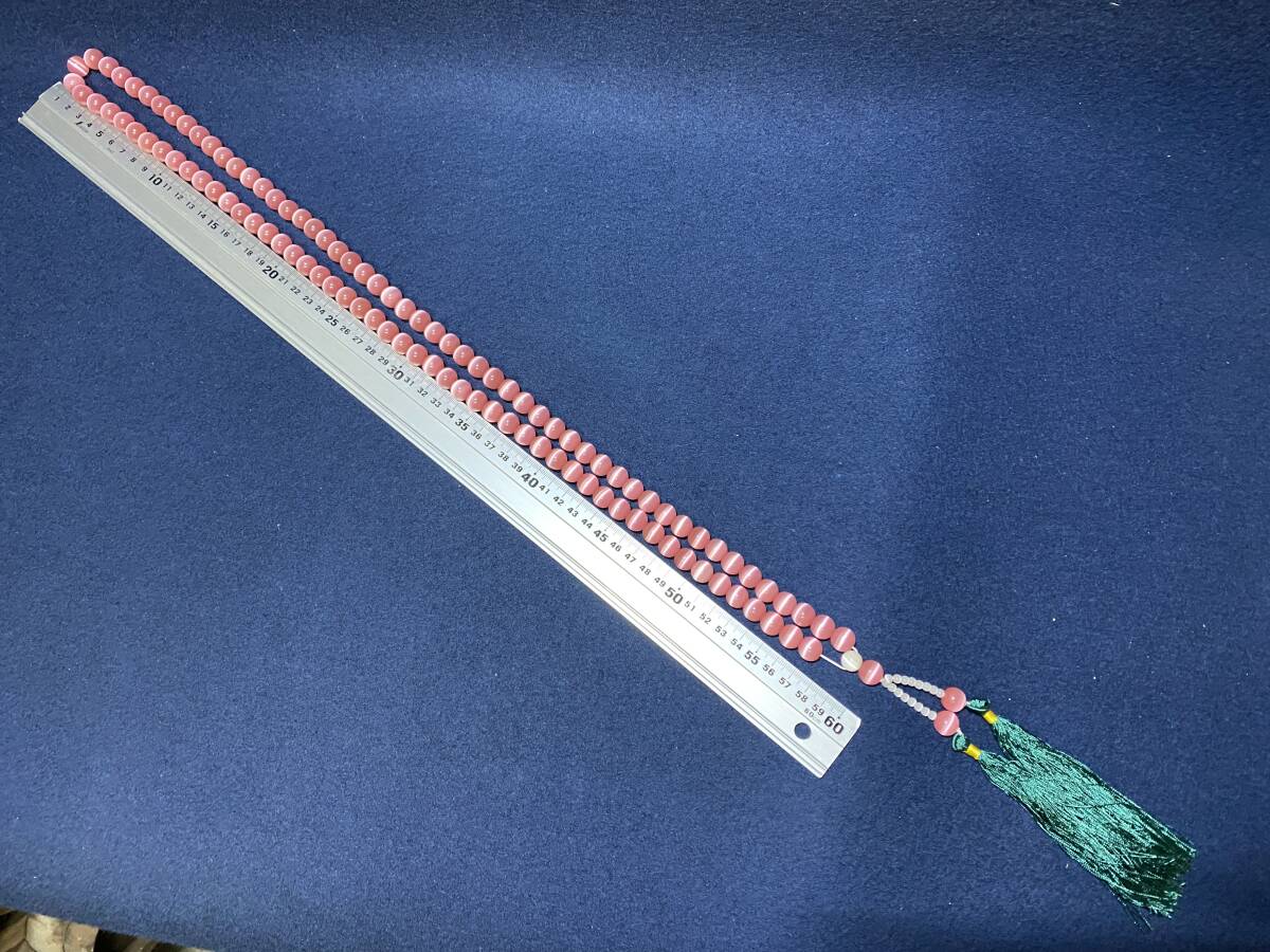 ★【逸品堂】★ 石製 虎目石 猫目石 キャッツアイ ビンク 桃色 御念珠 念珠 数珠 108珠 煩悩の数 除夜の鐘 ネックレス 沈香 龍眼 中古 美品