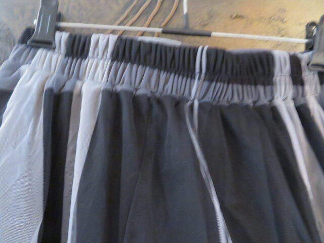 ウエストは直してません、平置き約34後ろゴム入り、総丈もそのままで約78、お直しはヒップ部分のチュールのボリュームを減らしてストンと落ちるようにお直ししました。お腹周りのチュールも広がらないデザインにしています。ヒップ部分は大体チュール部分が平置きで47位です。裏地はそのままのデザインです。