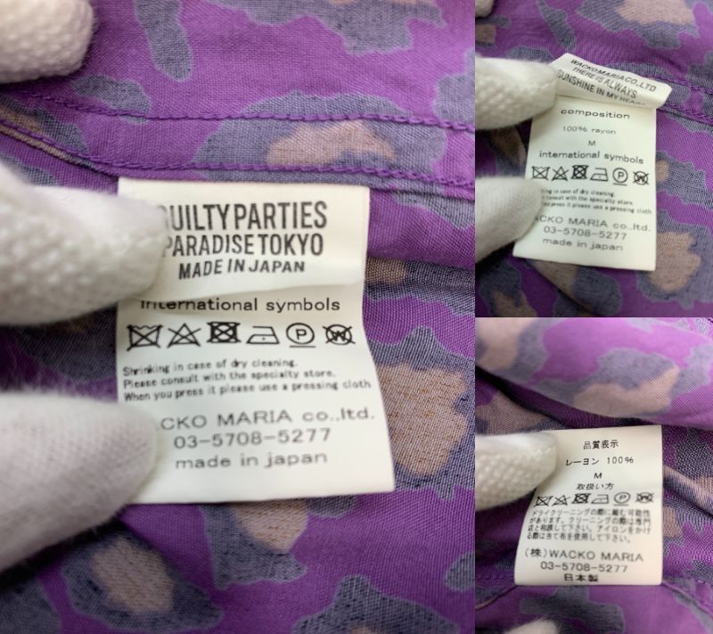 WACKOMARIA ワコマリア アロハシャツ レオパード パープル Mサイズ レーヨン 半袖シャツオープンカラー 解襟 ◇090450 | |||||||||