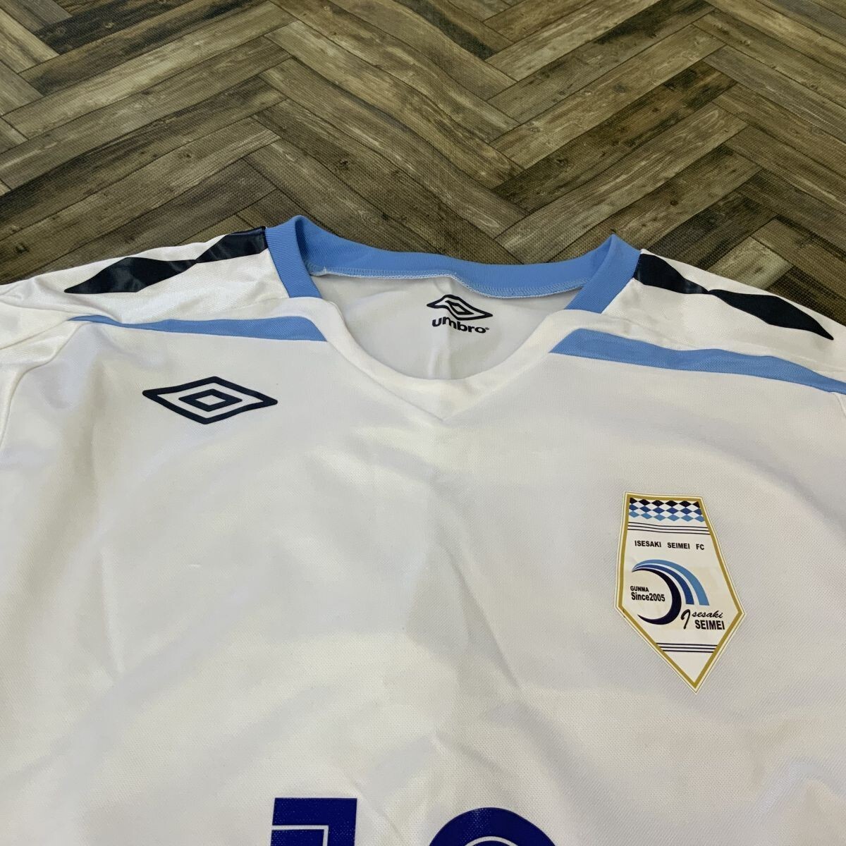 QS1144 実物 伊勢崎清明高校 半袖ユニフォーム サッカー アンブロ #18 ホワイト メンズXL相当