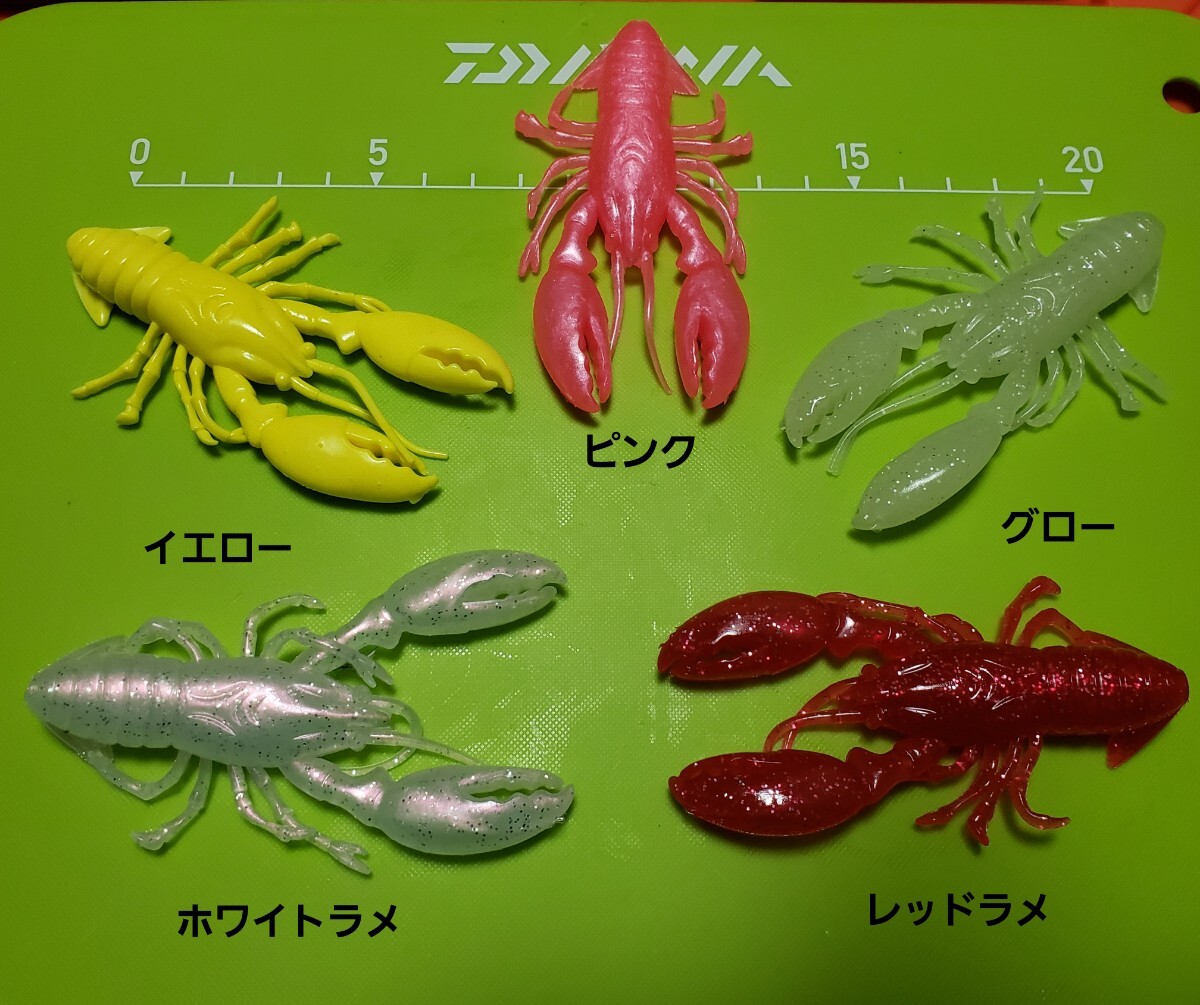 カラーはピンク、イエロー、グロー、ホワイトラメ、レッドラメでそれぞれを5匹セット、10匹セット、15匹セット、20匹セットで出品中です。