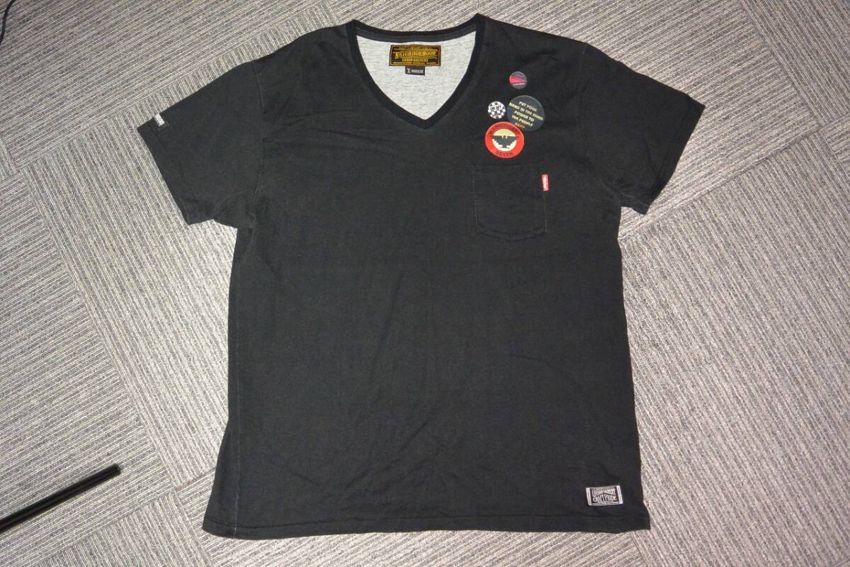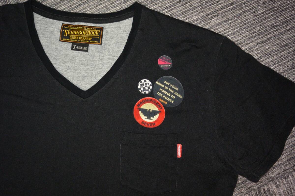 | 希少 USED品 NEIGHBORHOOD/ネイバーフッド チャコール グレー ポケット Vネック プリントTシャツ XLサイズ Tシャツ |