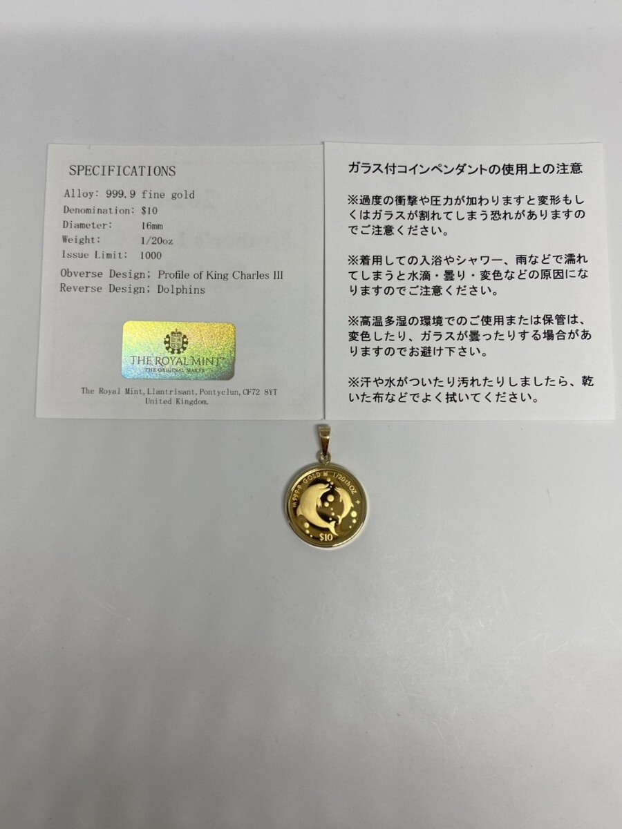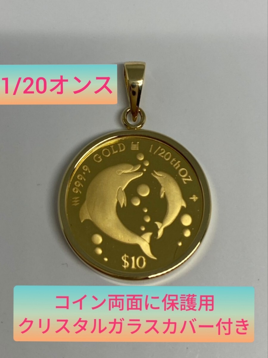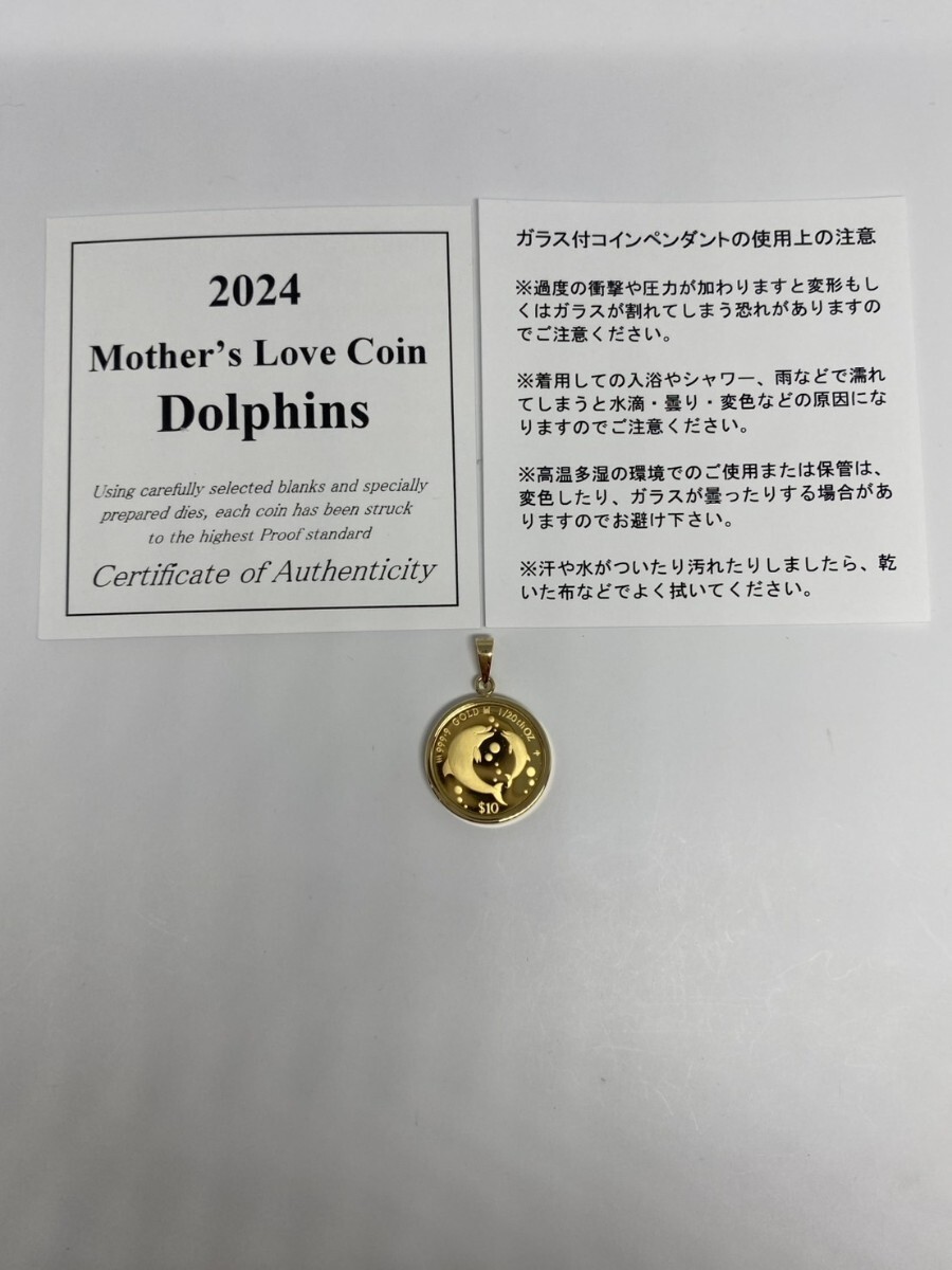 愛や友情の象徴として人気のイルカをモチーフにしたk24純金コインペンダントです(ペンダントトップのみ)