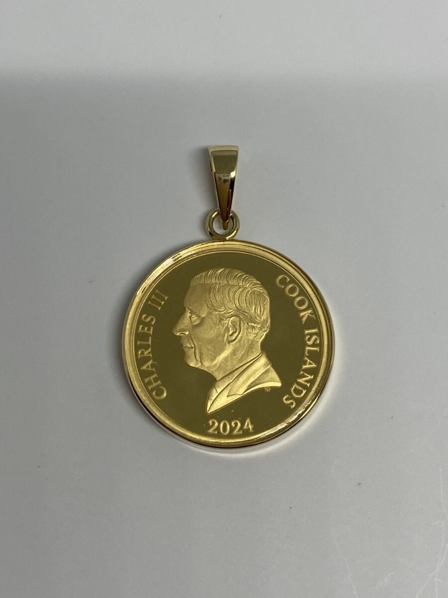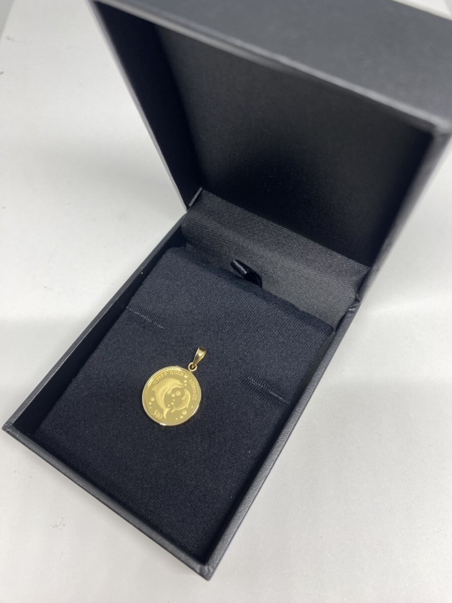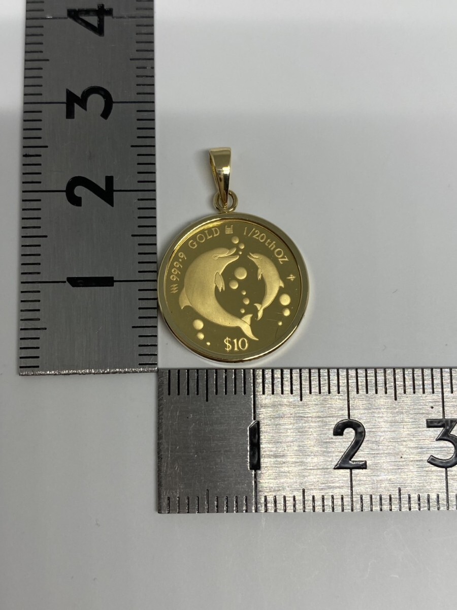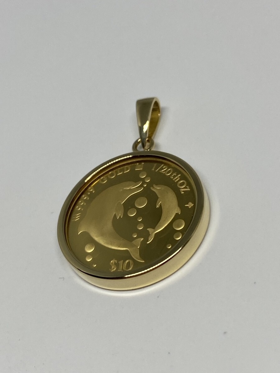 愛や友情の象徴として人気のイルカをモチーフにしたk24純金コインペンダントです(ペンダントトップのみ)