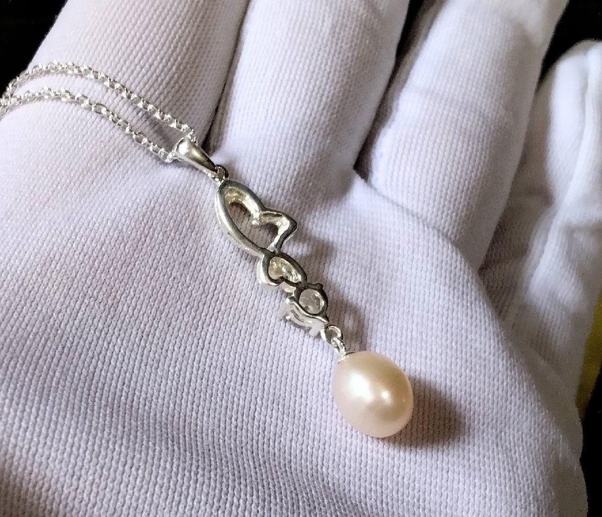 | サイズ | サイズ:◆トップの大きさは、33×7ミリです。 ◆オレンジパールの 大きさは、10×7ミリです。 ◆クリスタルジルコニア 1石の大きさは、4ミリです。 ◆チェーンは、シルバー925 小豆チェーン0.35×45cmです。 |