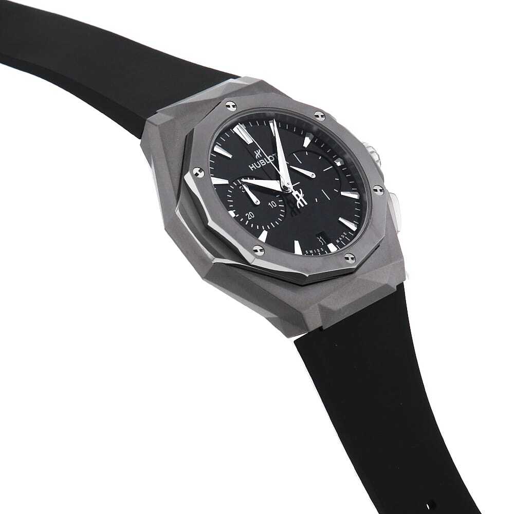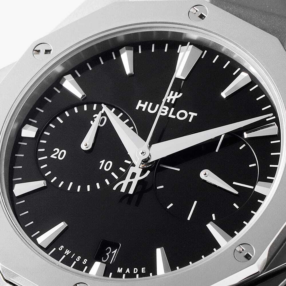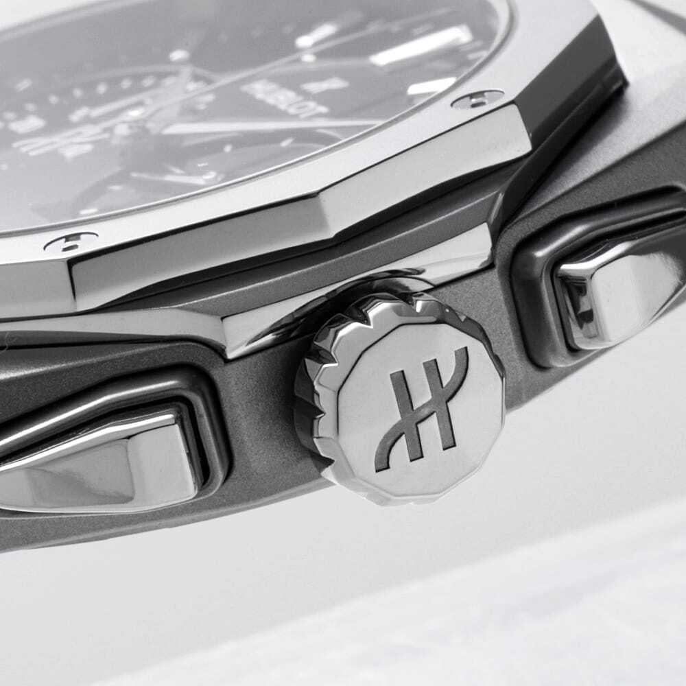 | モデル情報 | 世界的に有名なビジュアルアーティストによる折り目が作り出す象徴的なファセットと、多面的な構造に一目で惹きつけられるモデルです。ウブロがリチャード・オーリンスキーとコラボレーションして以来、象徴的なデザインとなっている12角形の印象的な形状がベゼルにも用いられている一本です。HUB1153自動巻きクロノグラフ搭載。パワーリザーブは約42時間。世界限定 500本。 |