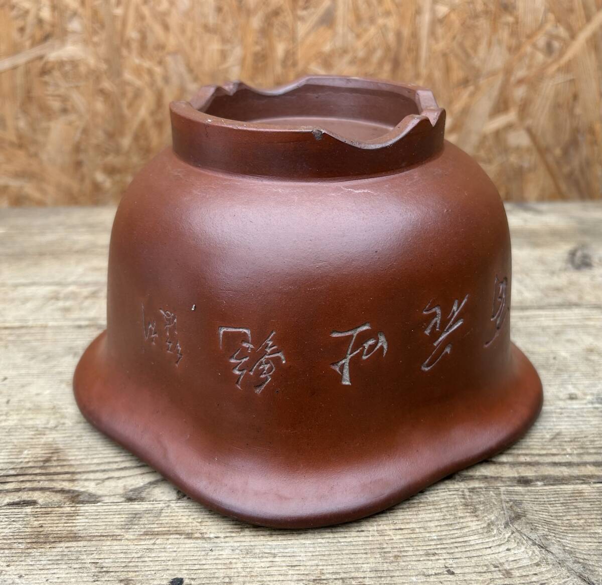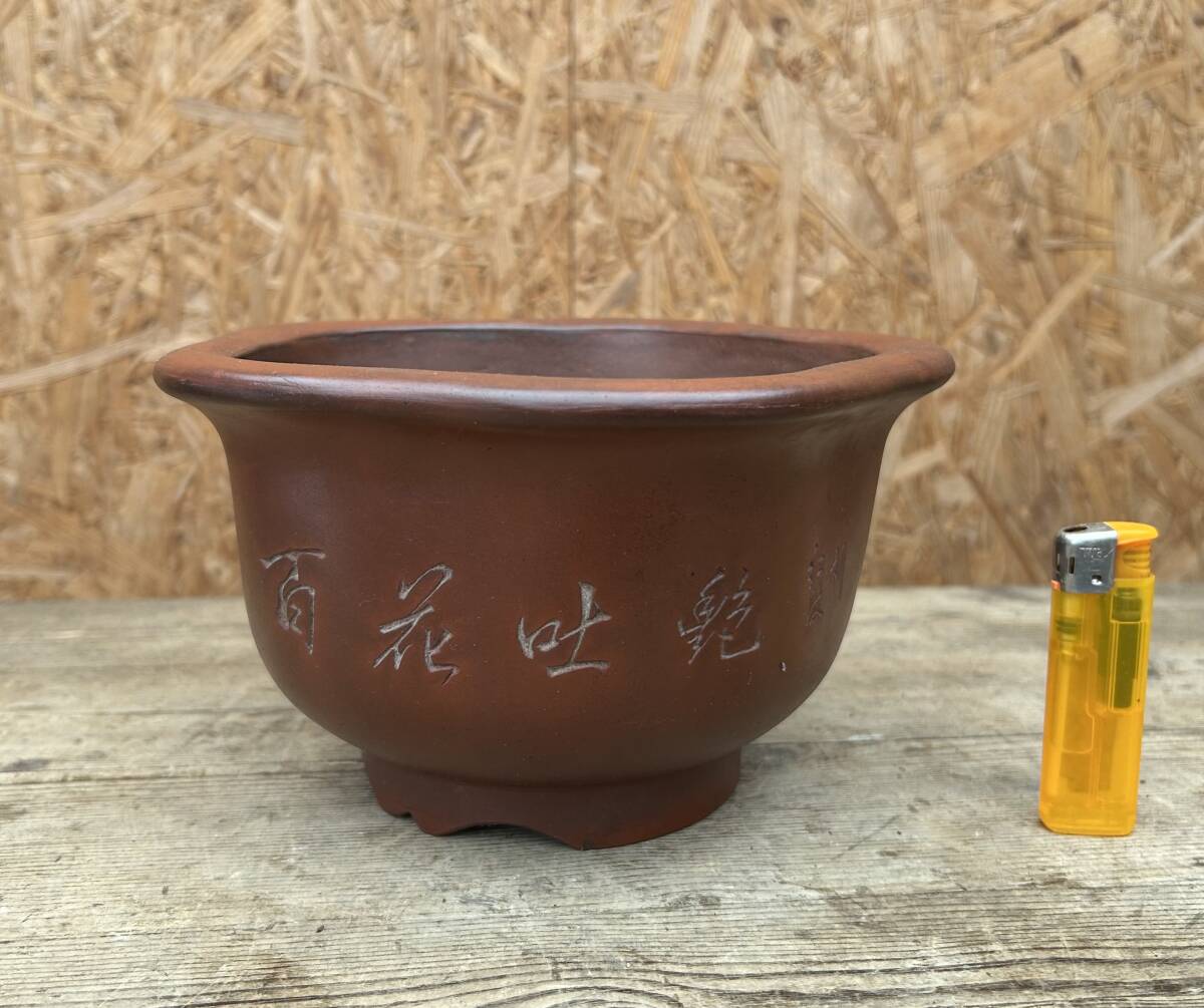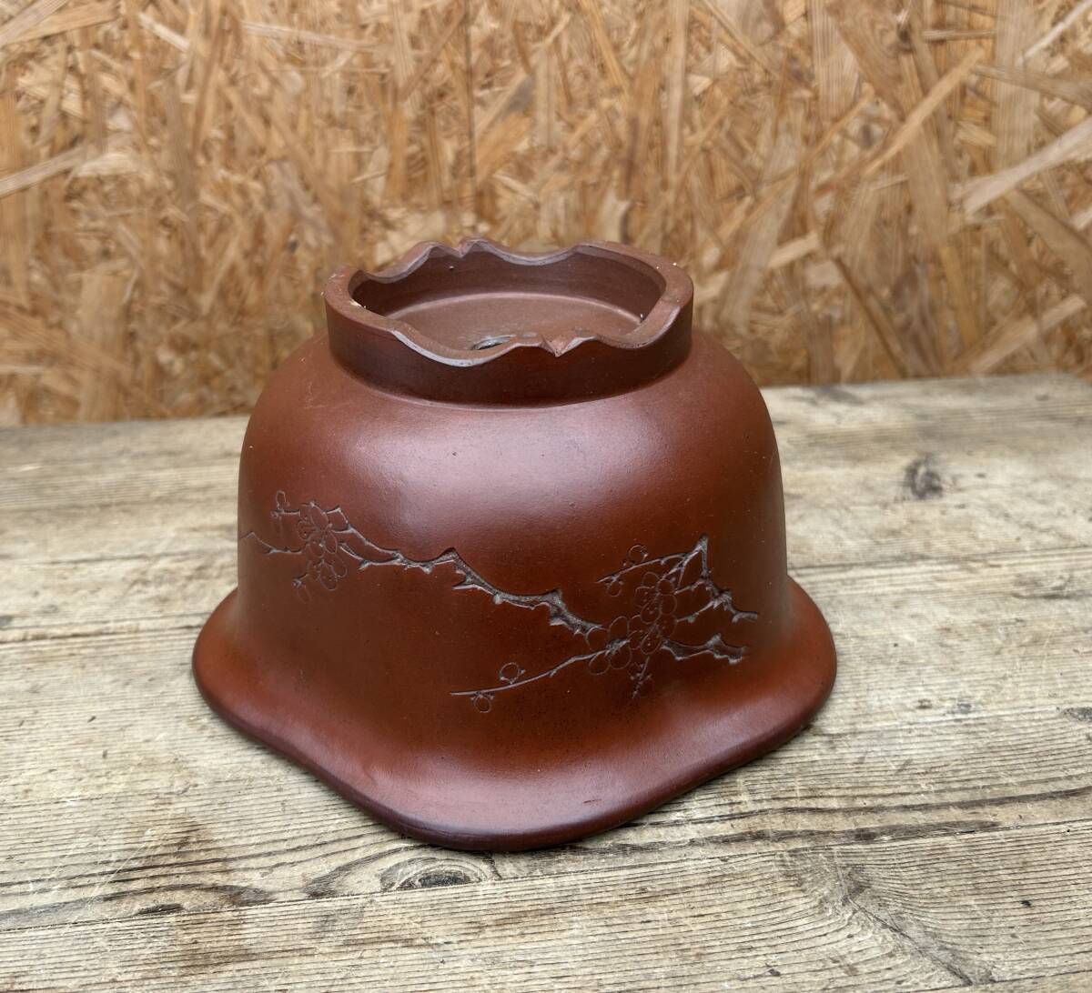 中國朱泥輪花鉢、足に僅かなホツレがあり、ご確認ご納得した上でのご入札をお願いいたします。