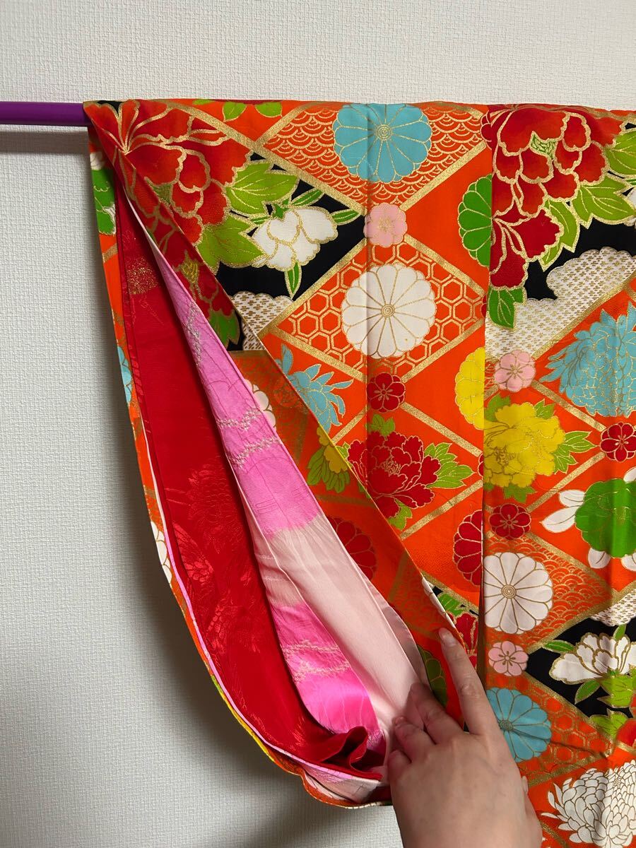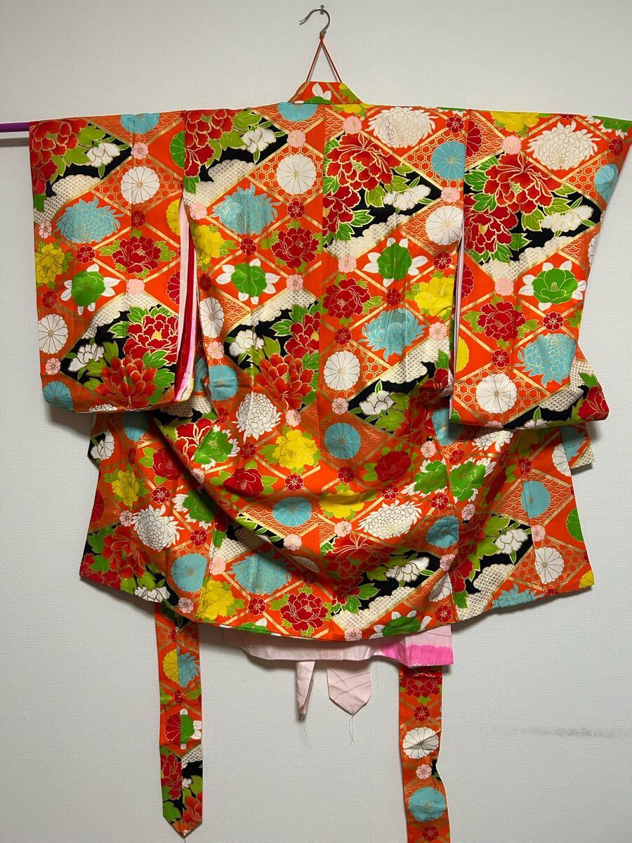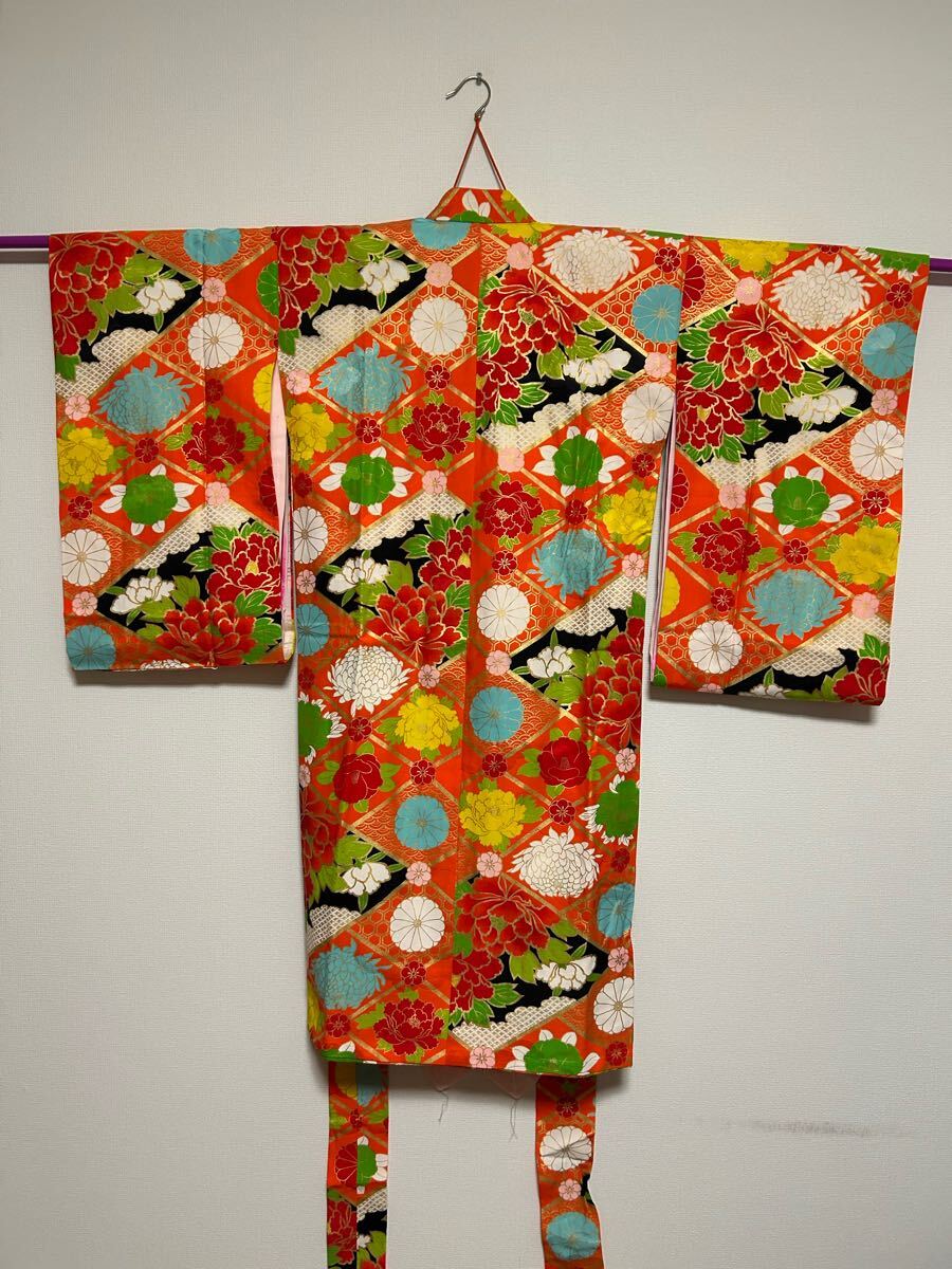 和装★おしゃれアンティーク着物 派手派手★ リメイクや和洋折衷コーデにも◎キッズサイズ七五三や記念撮影に◎古典柄